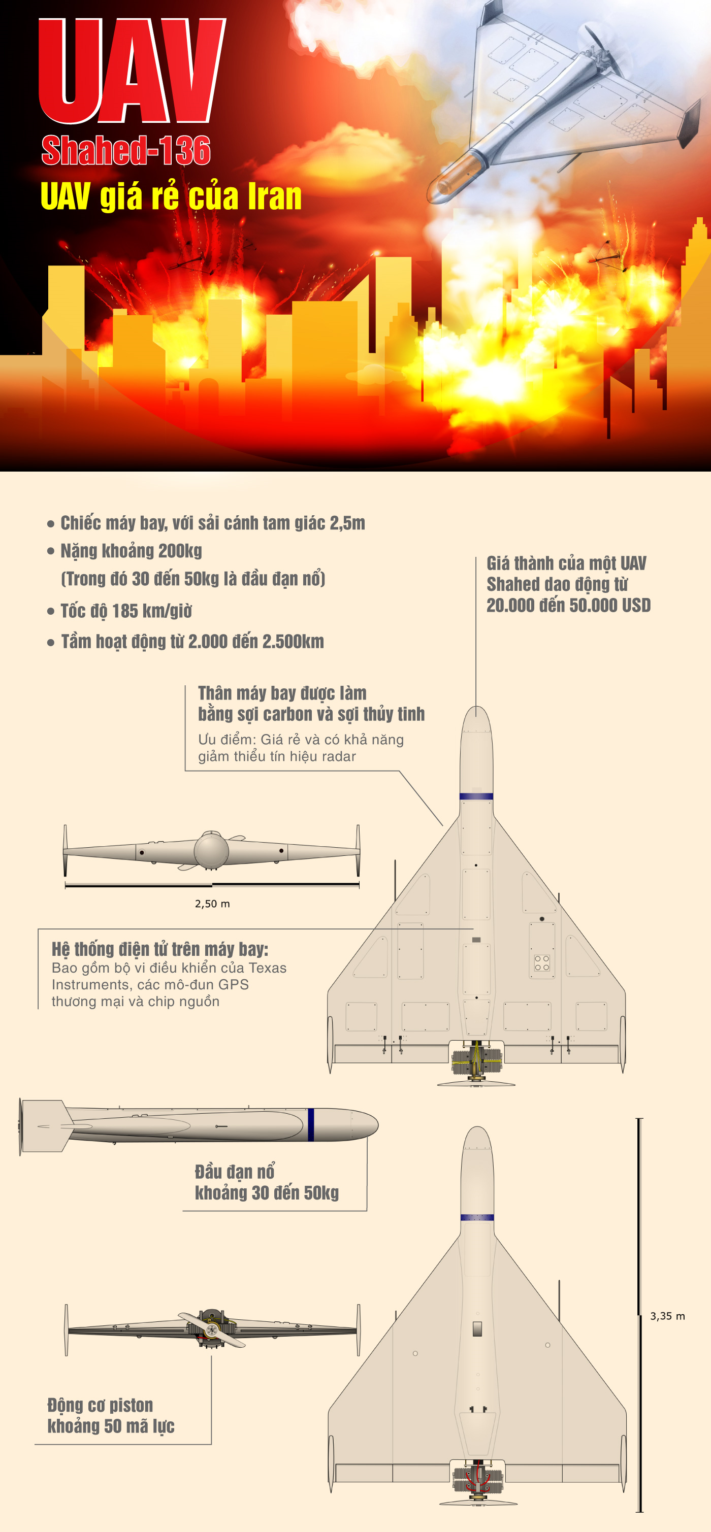 Shahed-136 - UAV giá rẻ của Iran có gì đặc biệt?