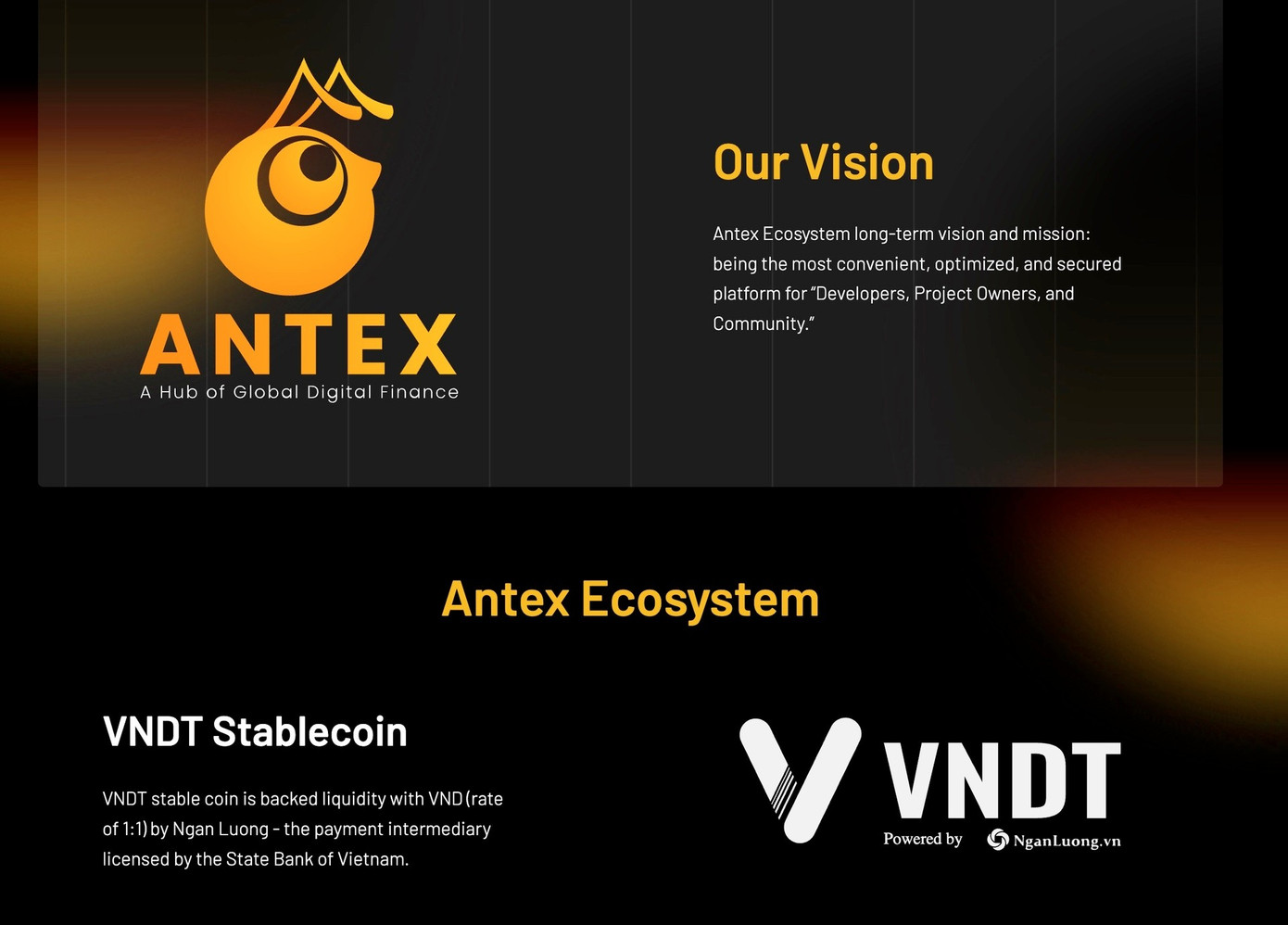Như Tiền Phong đã đưa tin, năm 2021, ông Bình giới thiệu AntEx - dự án blockchain được quảng bá là “hệ sinh thái tài chính phi tập trung (DeFi) toàn diện đầu tiên của Việt Nam”. Trọng tâm của dự án là đồng stablecoin VNDT, được “neo” theo giá trị Việt Nam đồng, và cam kết được bảo chứng 1:1 bằng tiền thật thông qua ví Ngân Lượng - nền tảng thanh toán thuộc NextTech.