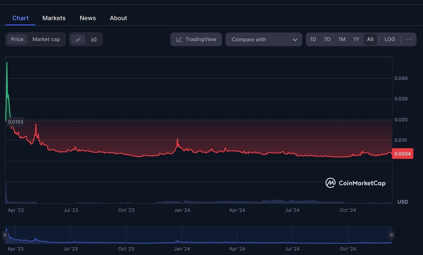 Thế nhưng, chỉ sau khi token AntEx được niêm yết, giá trị của nó rơi tự do, mất tới 99%, khiến nhiều người trắng tay. Đến tháng 3/2023, dự án đổi tên thành Rabbit (RAB) – động thái được cho là nhằm “xóa lịch sử sụt giá”, song token mới tiếp tục lao dốc không phanh.