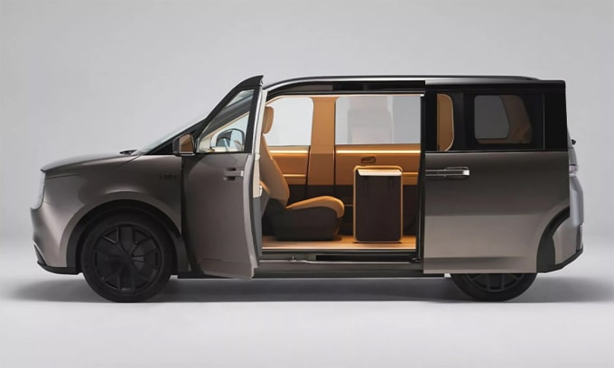 Cửa sau mở trượt, ghế trước có thể xoay ra sau. Ảnh: Sharp