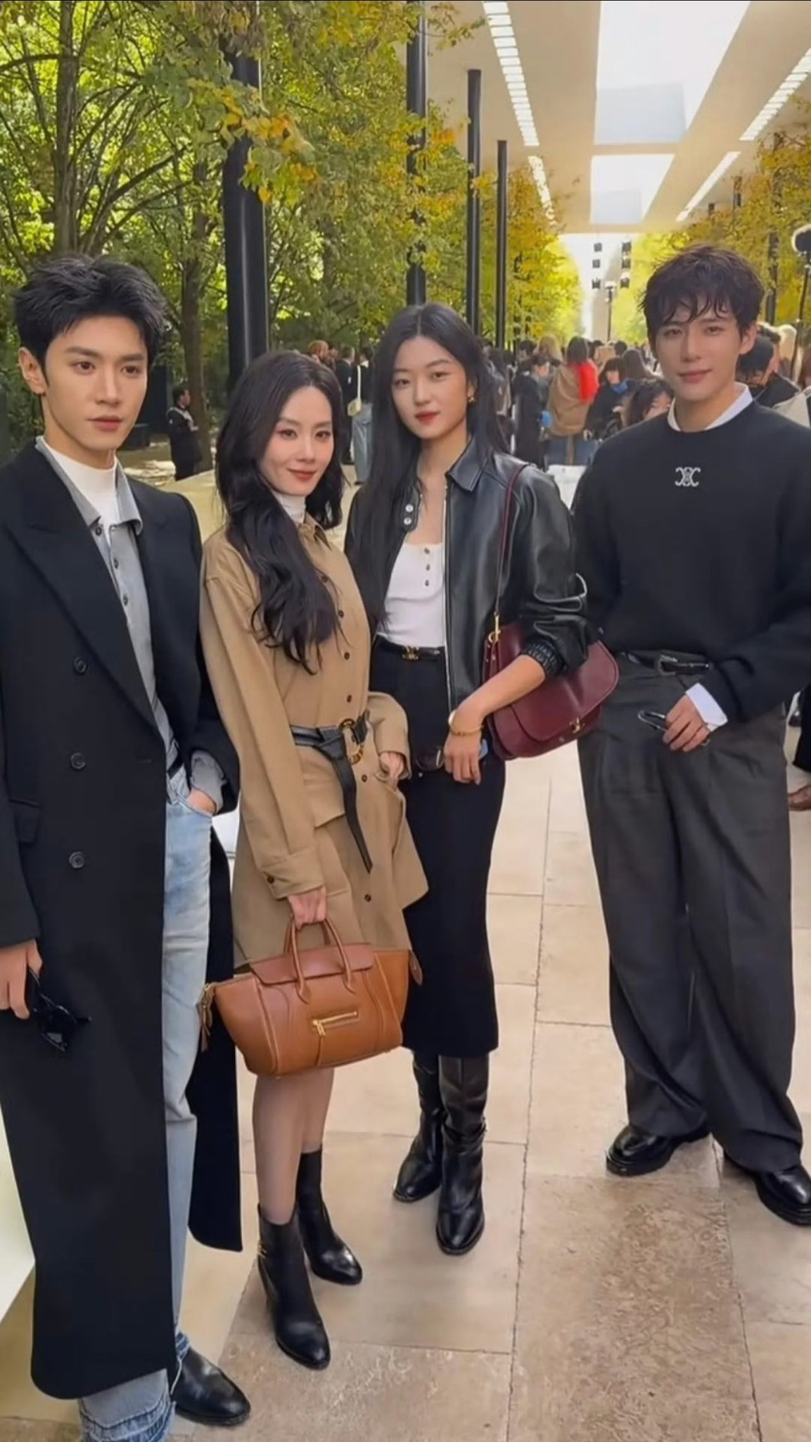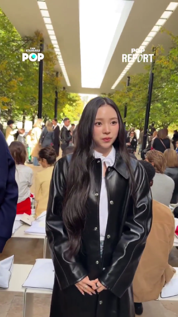 Narin là idol Gen 4,5 duy nhất nhận được lời mời cá nhân tới dự show Celine. Nữ tân binh chọn áo khoác da bóng dáng dài làm tâm điểm, kết hợp sơ mi trắng, sơ vin gọn gàng với quần jeans ống đứng.
