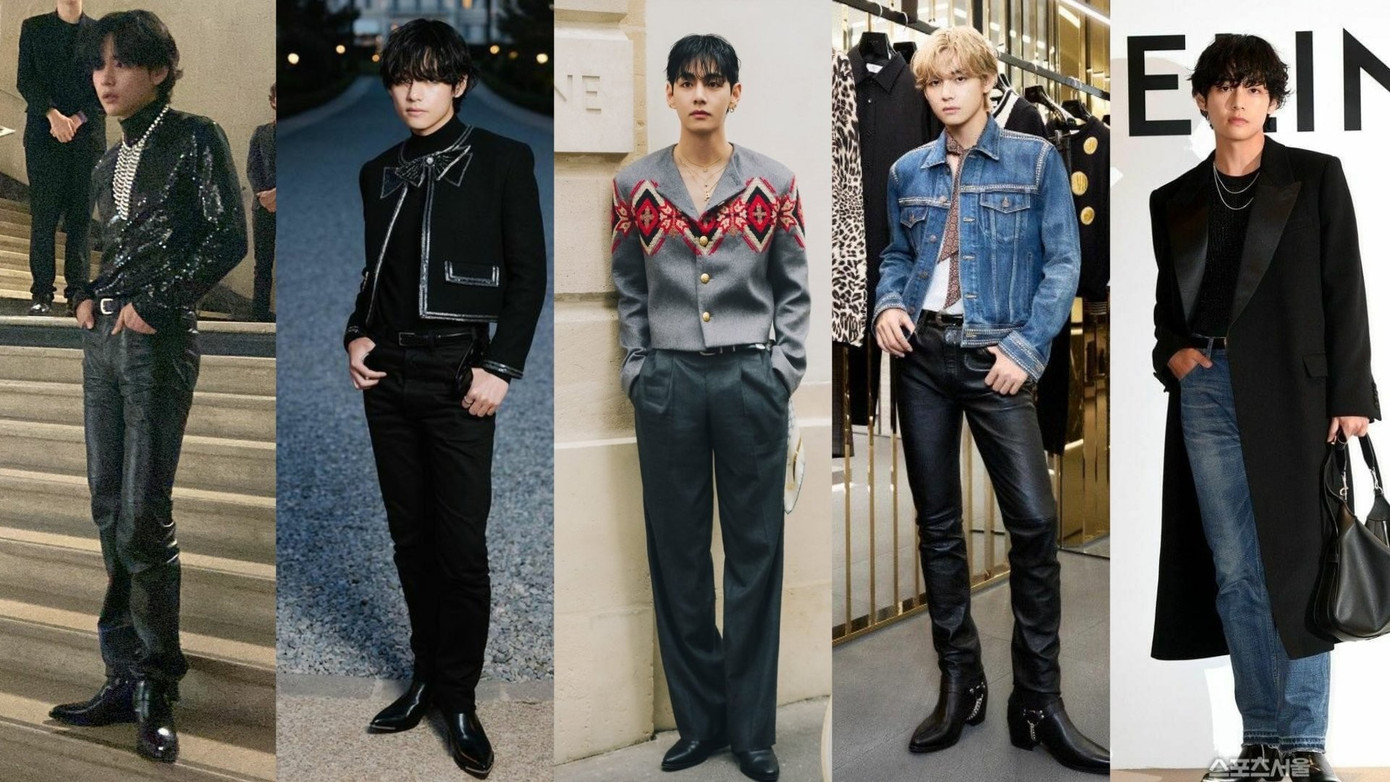 Phong độ thời trang ổn định của "chàng thơ" V BTS trong những lần tham dự sự kiện của thương hiệu Celine.