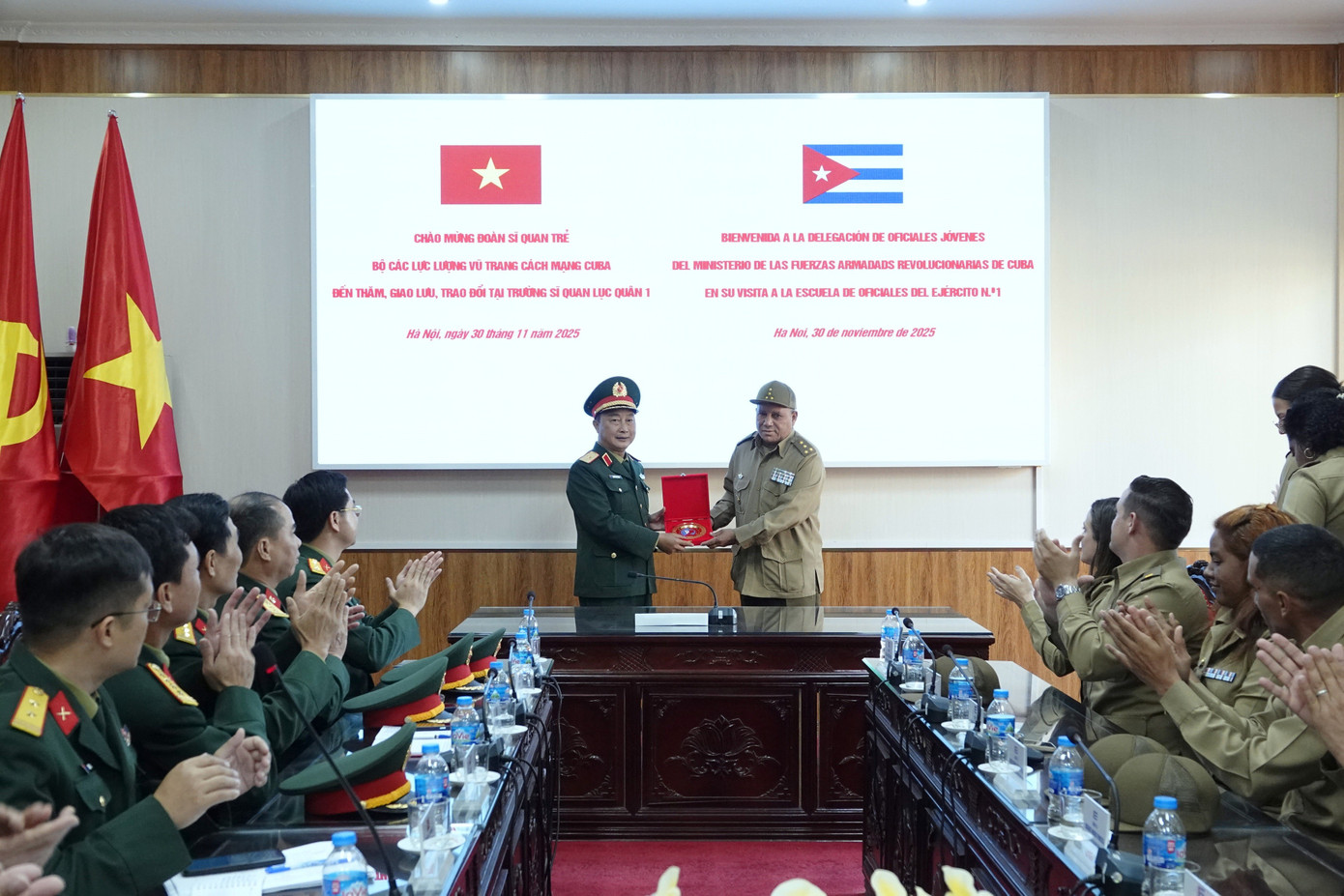 Trong khuôn khổ hoạt động giao lưu Sĩ quan trẻ Việt Nam - Cuba năm 2025, trong hai ngày 29 và 30/11, đoàn sĩ quan trẻ (SQT) Bộ các Lực lượng vũ trang cách mạng Cuba đã tới giao lưu, trao đổi tại Học viện Kỹ thuật Quân sự và Trường Sĩ quan Lục quân 1.