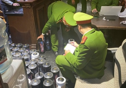 Theo đó, khoảng 22h20 ngày 07/01, Tổ công tác của Phòng Cảnh sát quản lý hành chính về trật tự xã hội phối hợp với Công an phường Từ Liêm kiểm tra một nhà hàng trên địa bàn phường Từ Liêm hoạt động karaoke không phép. Tại thời điểm kiểm tra quán có 2 phòng với 10 khách. Tại khu vực kho của quán, lực lượng chức năng phát hiện 90 bình khí N2O với tổng khối lượng 337,85 kg.