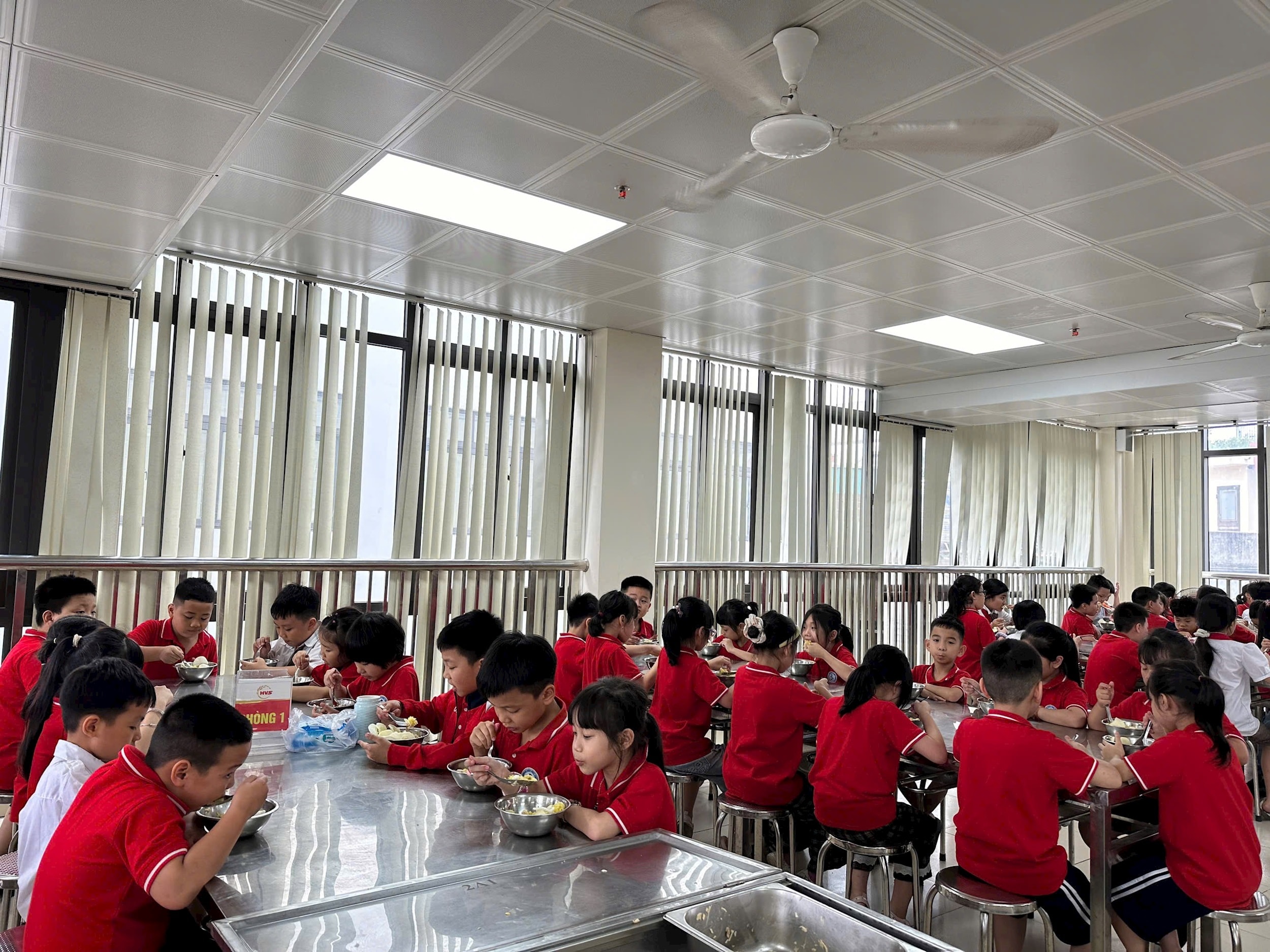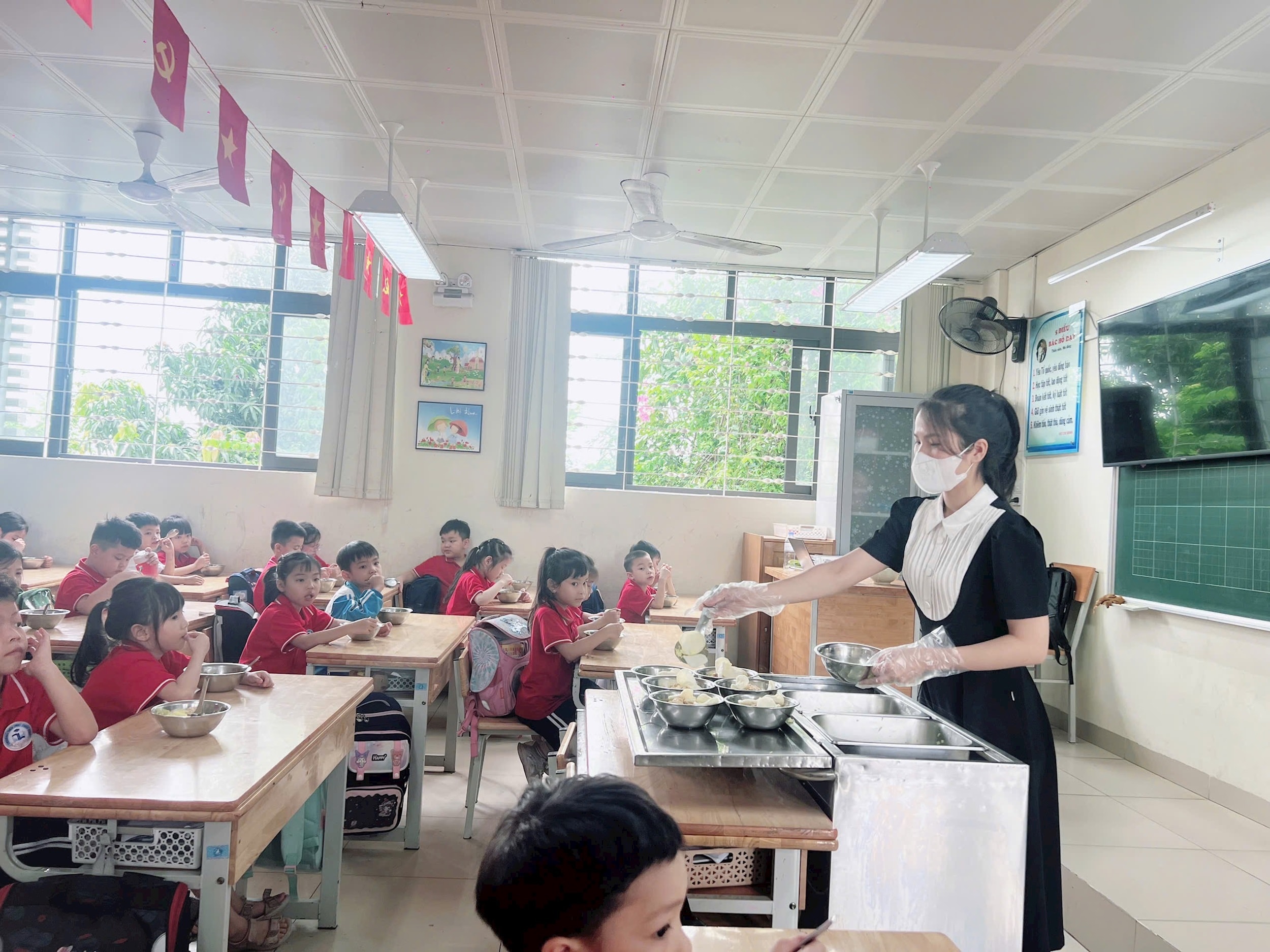 Bữa ăn bán trú ở Trường Tiểu học Thúy Lĩnh, phường Lĩnh Nam, luôn được Ban giám hiệu nhà trường quan tâm, chú trọng hàng đầu. Ảnh: NT