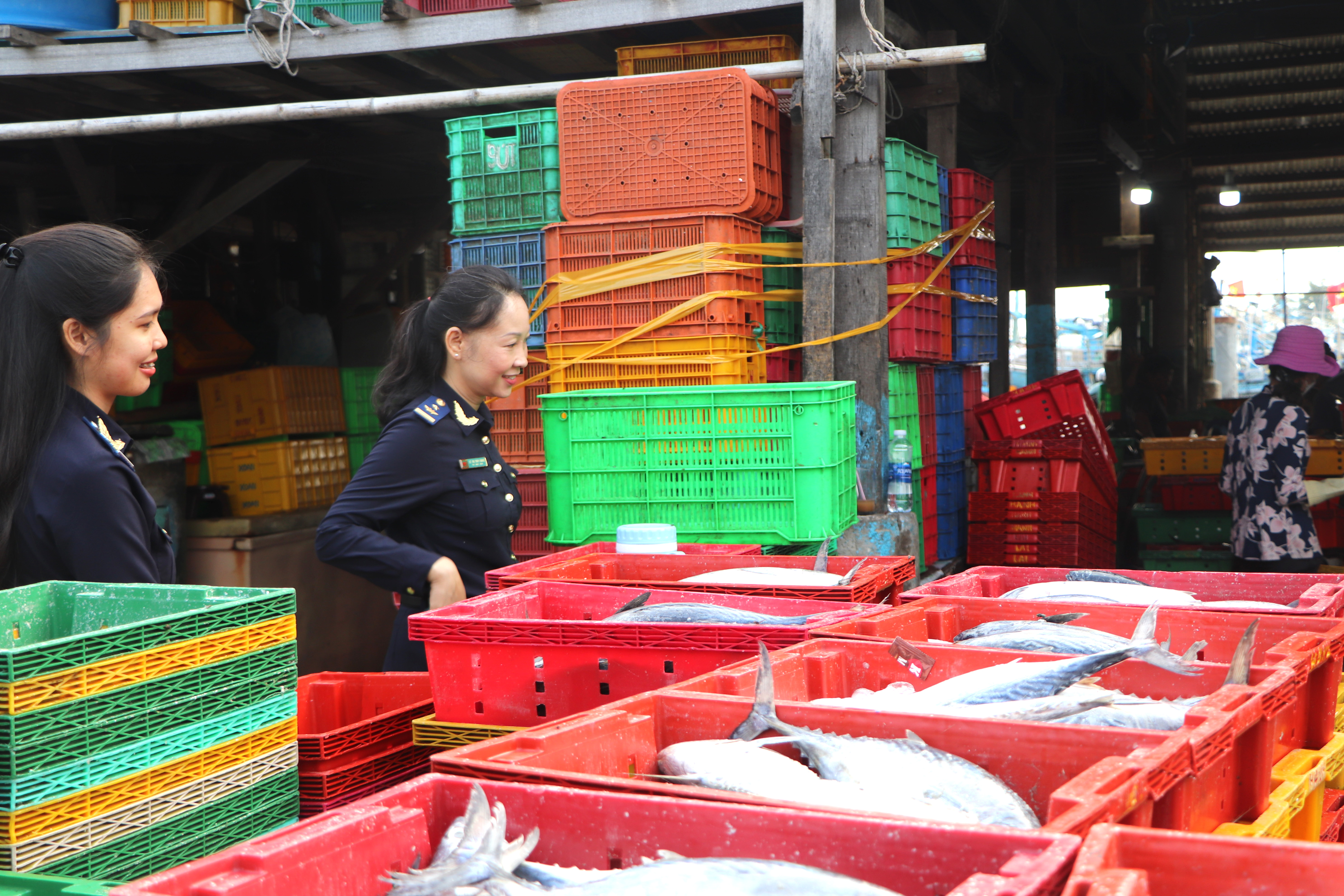Lực lượng chức năng cũng phối hợp kiểm soát chặt tàu cá ra vào cảng, kiểm tra nhật ký khai thác và giám sát sản lượng thủy sản bốc dỡ. Việc thống kê sản lượng và xác nhận nguồn gốc nguyên liệu thủy sản khai thác được thực hiện nghiêm túc nhằm đảm bảo minh bạch và đáp ứng yêu cầu truy xuất nguồn gốc theo quy định.