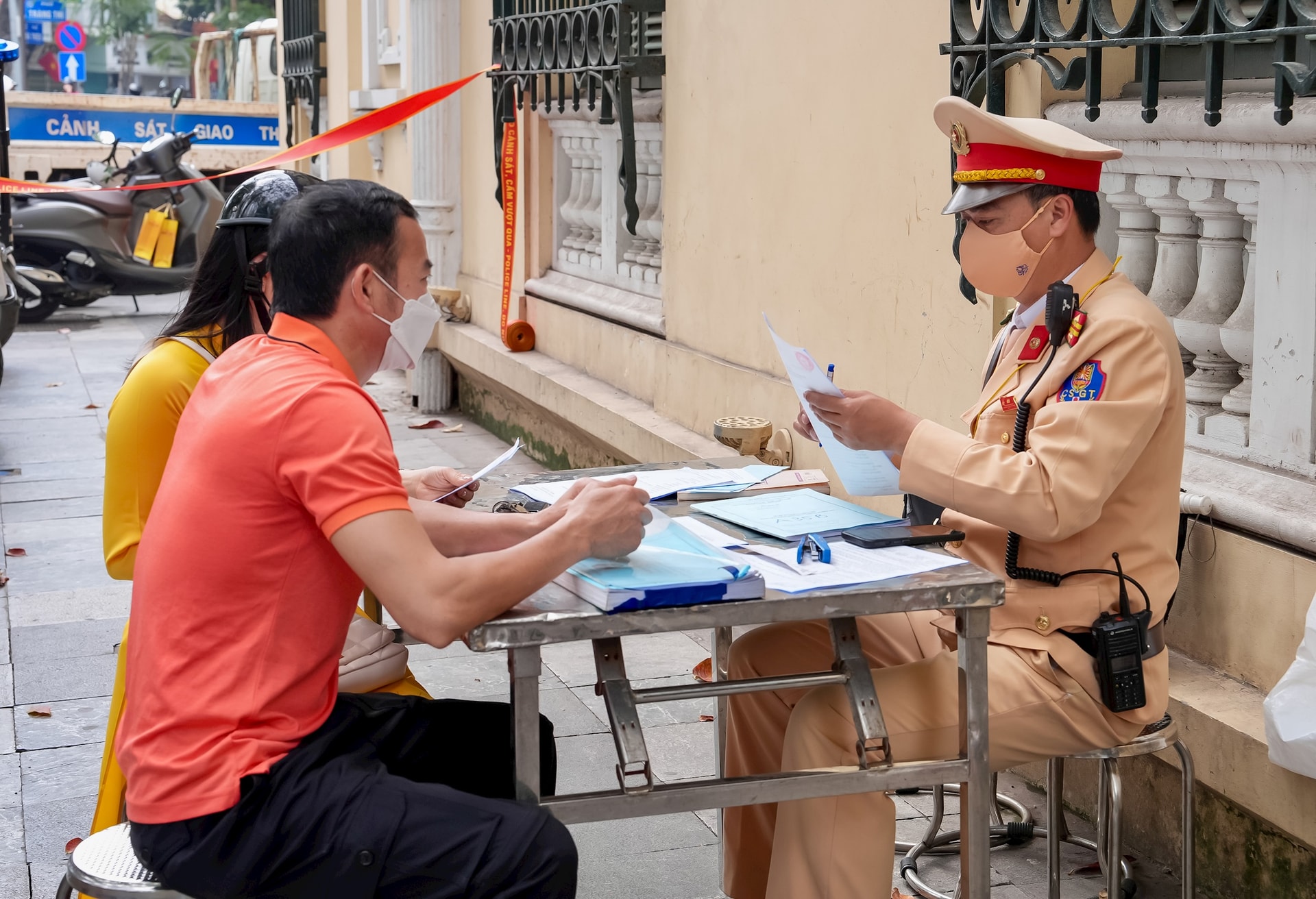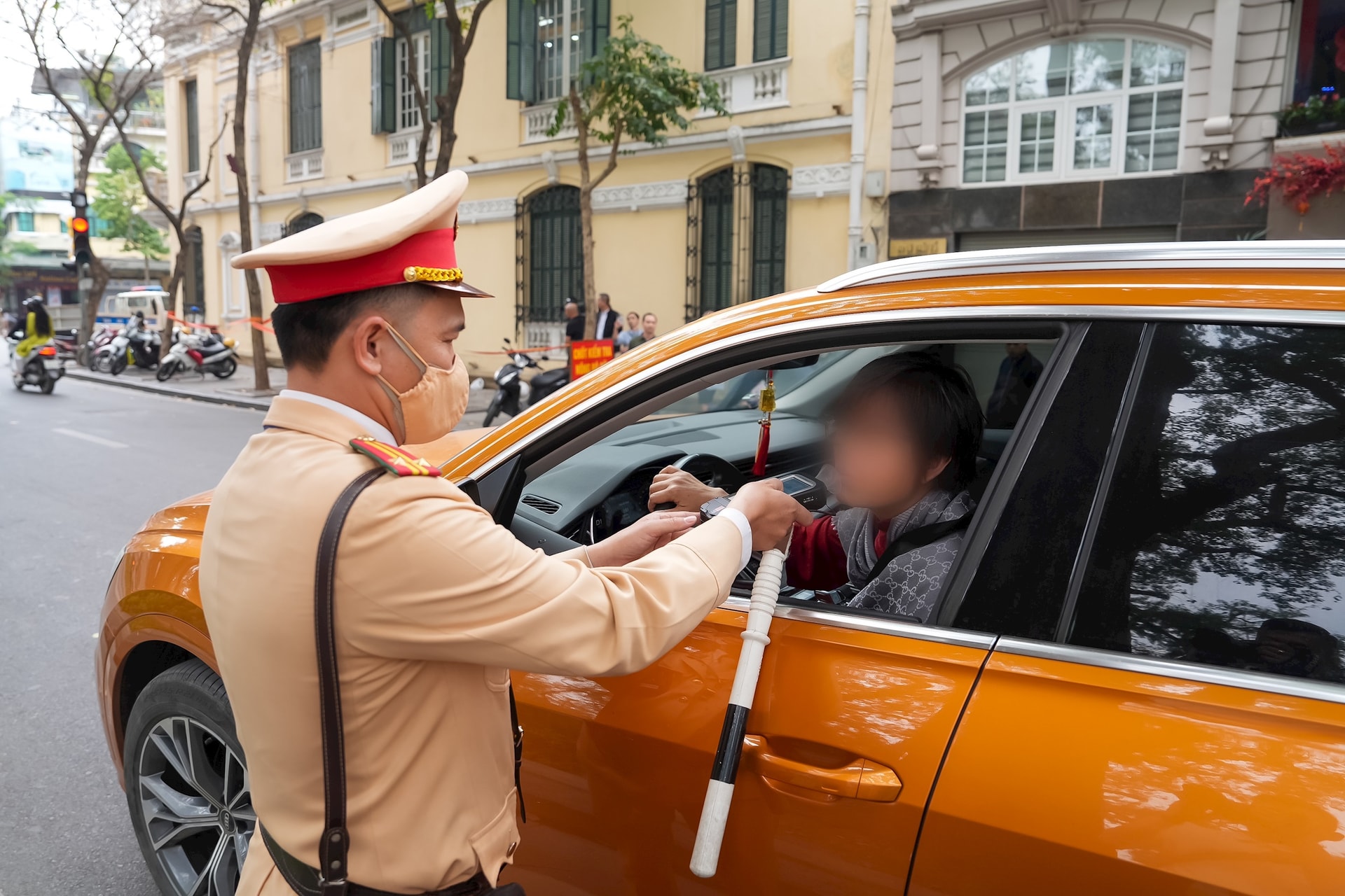 Ghi nhận của phóng viên tại khu vực ngã tư Lê Thái Tổ - Tràng Thi, tổ công tác của Đội CSGT số 1 đã lập chốt kiểm tra lưu động, tiến hành dừng xe ngẫu nhiên đối với các phương tiện lưu thông qua đây. Chỉ trong buổi sáng, nhiều trường hợp vi phạm đã bị phát hiện và xử lý theo quy định.