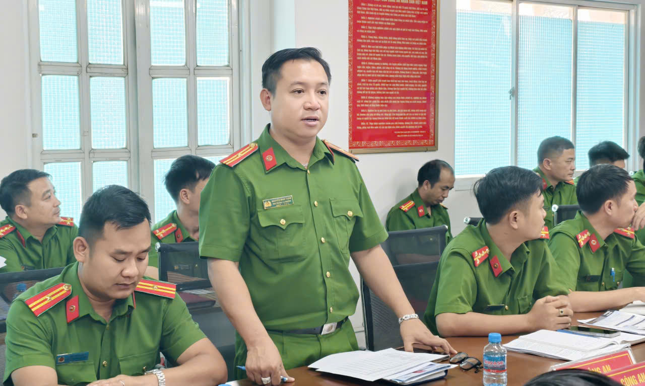 Thiếu tá Phạm Ngọc Thanh đề nghị công an các phường cần nâng cao hiệu quả công tác phòng cháy, chữa cháy tại cơ sở