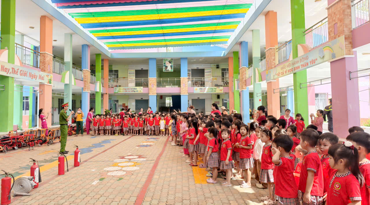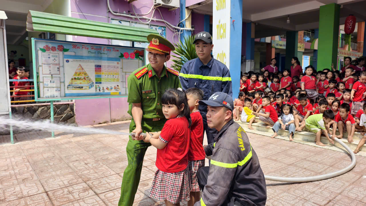 Cùng ngày, Đội Chữa cháy và CNCH khu vực 32 tổ chức tập huấn kỹ năng PCCC và CNCH cho lực lượng PCCC cơ sở tại Trường Mầm non Huỳnh Thị Chấu (phường Tân Uyên). Gần 600 giáo viên, học sinh được hướng dẫn sử dụng phương tiện chữa cháy tại chỗ, kỹ năng thoát nạn và xử lý tình huống khi xảy ra sự cố.
