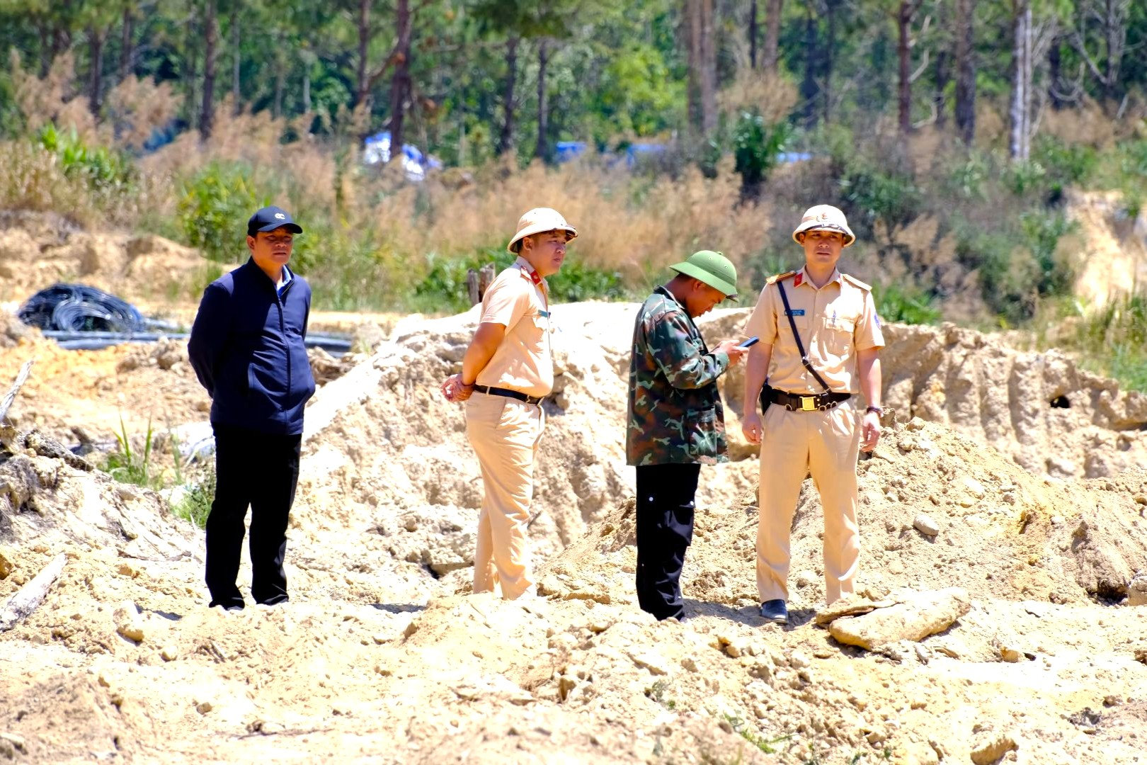 Vừa qua, Đội Cảnh sát đường thủy số 1 thuộc Phòng Cảnh sát giao thông đã phối hợp với chính quyền và Công an xã Đam Rông 4 kiểm tra khu vực thượng nguồn sông Đa Dâng. Tại đây, đoàn công tác tiến hành kiểm tra một cơ sở do ông N.V.T làm chủ, có diện tích 185.000 m², được cấp phép với mục đích trồng rừng kinh tế và có đăng ký thu hồi khoáng sản từ hoạt động cải tạo đất.
