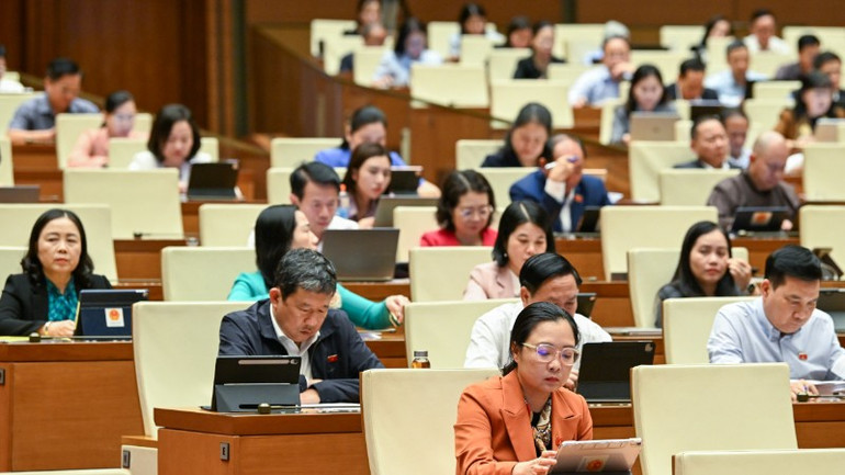 Quốc hội thảo luận tại Hội trường về dự án Luật sửa đổi, bổ sung một số điều của Luật Lý lịch tư pháp. (Ảnh: DUY LINH)