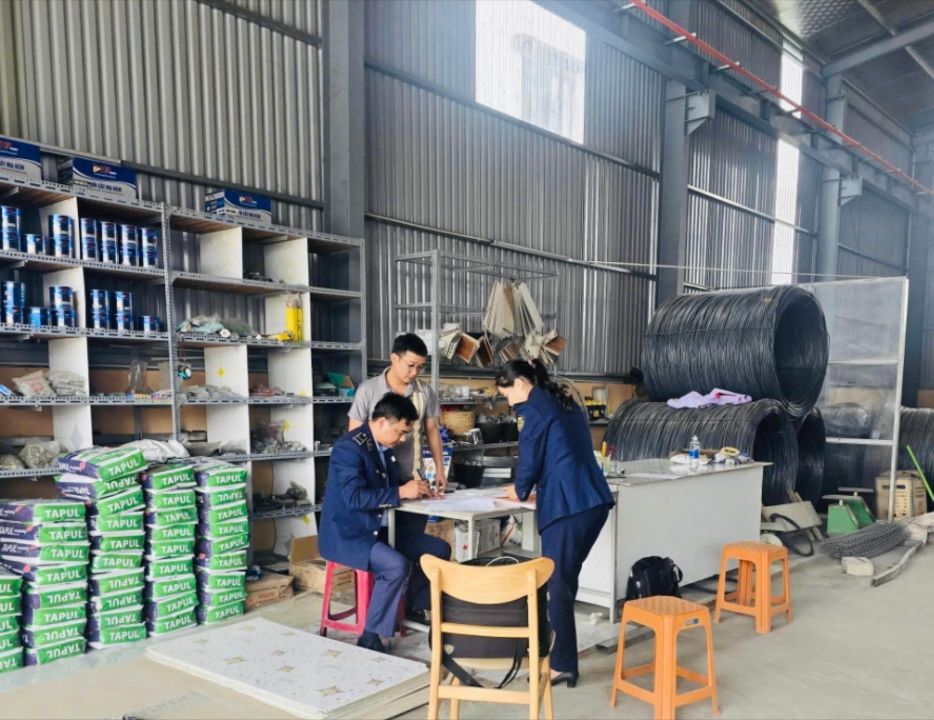 Đội Quản lý thị trường số 11 đã tiến hành kiểm tra đột xuất doanh nghiệp trên địa bàn xã Vu Gia. Ảnh: ĐVCC