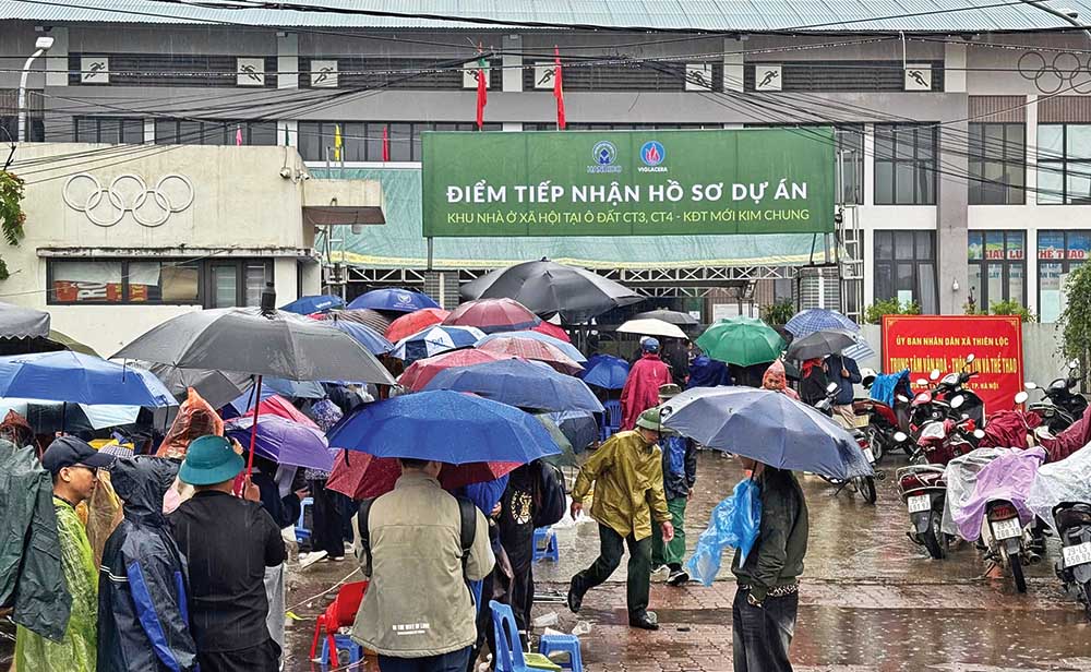 Mới đây, liên danh chủ đầu tư là Tổng công ty Đầu tư và Phát triển nhà Hà Nội và Tổng công ty Viglacera - CTCP đã chính thức tiếp nhận hồ sơ đăng ký mua, thuê, thuê mua nhà ở xã hội tại Dự án CT3 Kim Chung (xã Thiên Lộc). Dù không phải dự án ở khu vực trung tâm, nhưng lượng người quan tâm nộp hồ sơ tại đây vẫn rất lớn. Trước ngày mở bán đầu tiên, nhiều người đã “cắm trại” từ chiều hôm trước để giành được số thứ tự bốc thăm.
