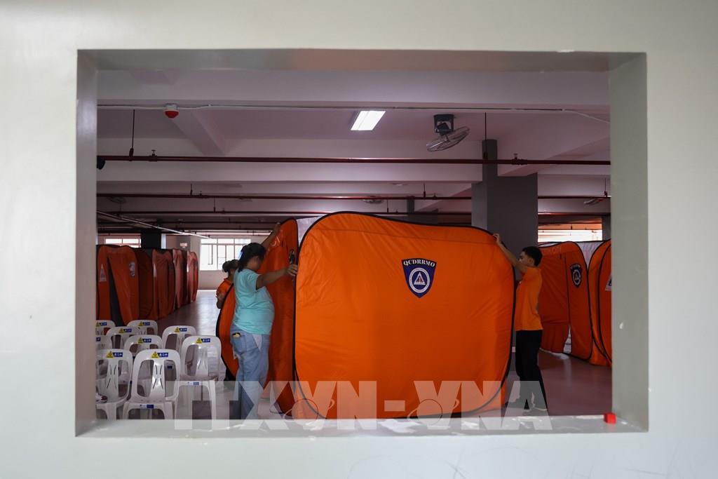 Lực lượng cứu hộ dựng lều cho người dân sơ tán tránh bão Fung-Wong tại Quezon, Philippines. Ảnh: AA/TTXVN