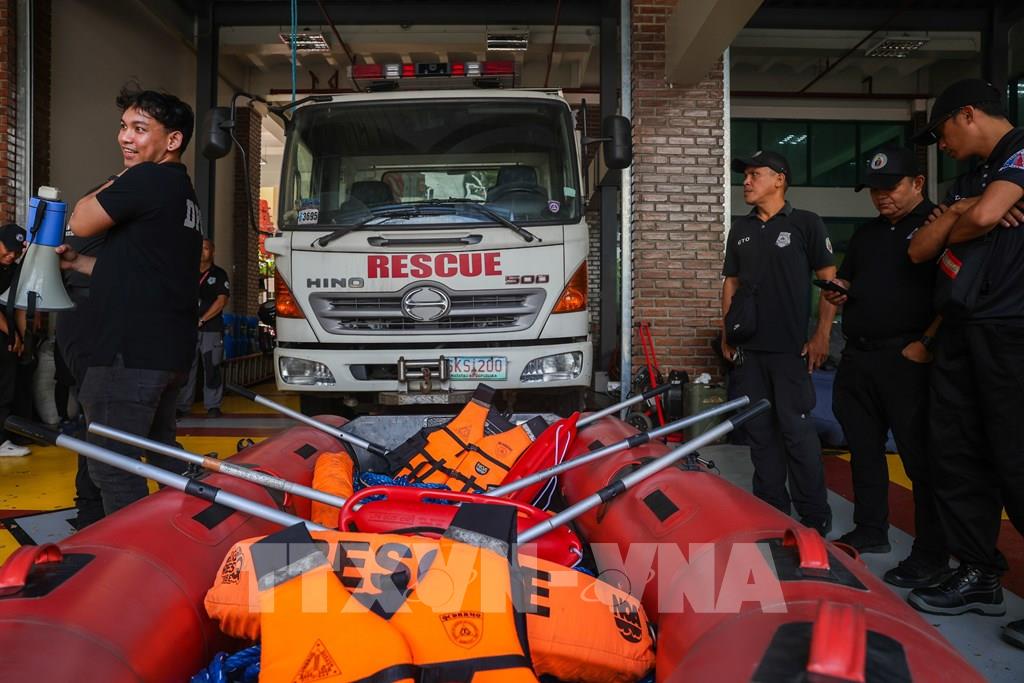 Lực lượng cứu hộ chuẩn bị sẵn sàng ứng phó với bão Fung-Wong tại Quezon, Philippines. Ảnh: AA/TTXVN