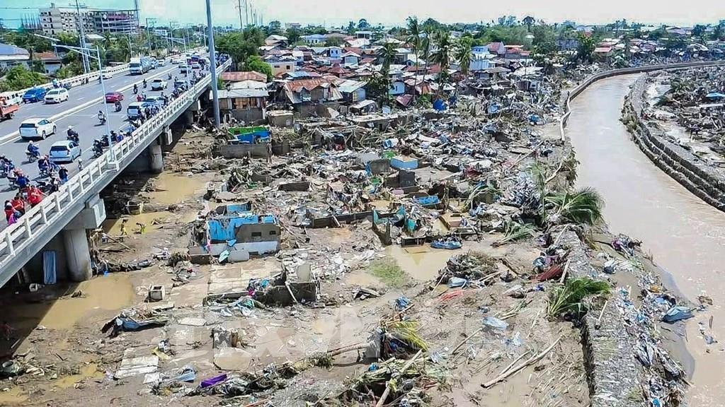 Khu vực bị bão Kalmaegi tàn phá tại tỉnh Cebu, Philippines. Ảnh: THX/TTXVN