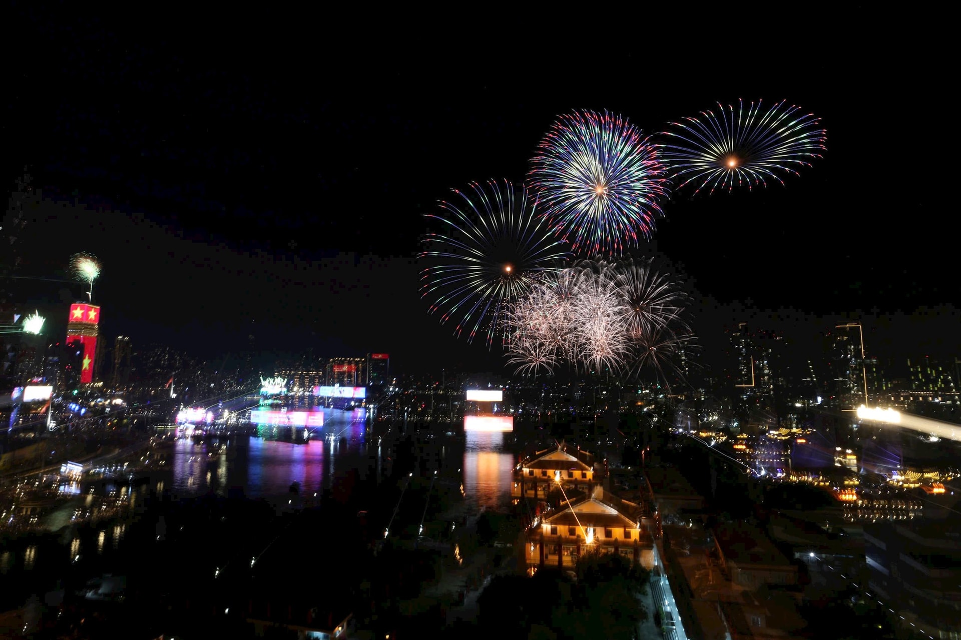 Pháo hoa rực sáng bầu trời mừng năm mới.