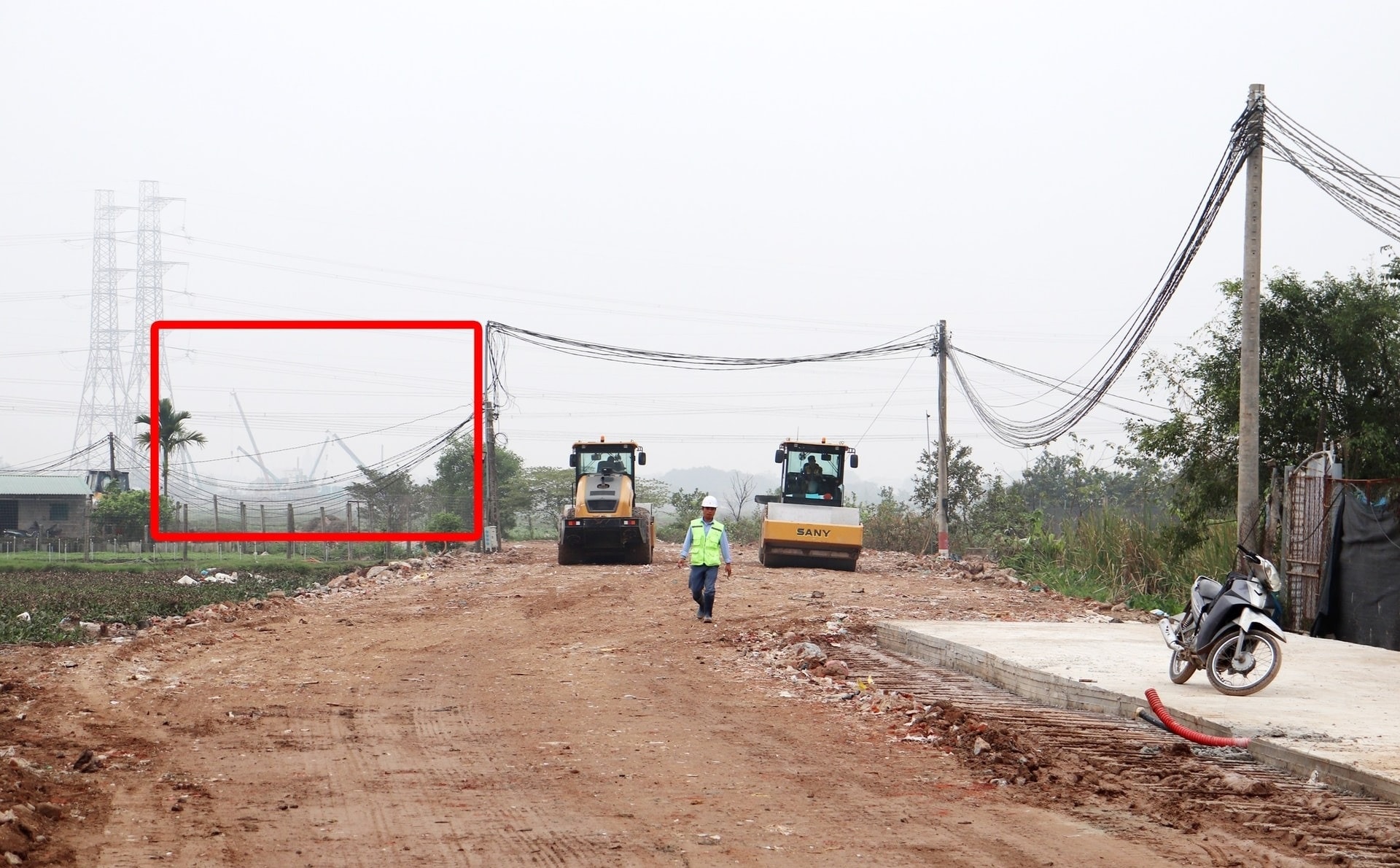 Hệ thống đường nội khu đang được lu lèn và hoàn thiện phần nền để chuẩn bị cho giai đoạn thi công kết cấu chính. Sự xuất hiện của nhiều cẩu tháp tại hiện trường cho thấy dự án đang sẵn sàng cho các hạng mục quy mô lớn.