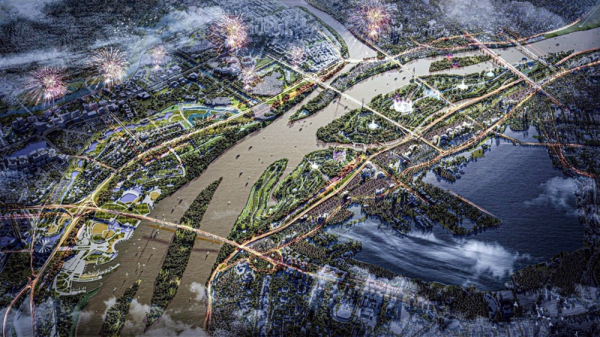 Phối cảnh đề xuất “Đại lộ và cảnh quan ven sông Hồng” được liên danh thực hiện.