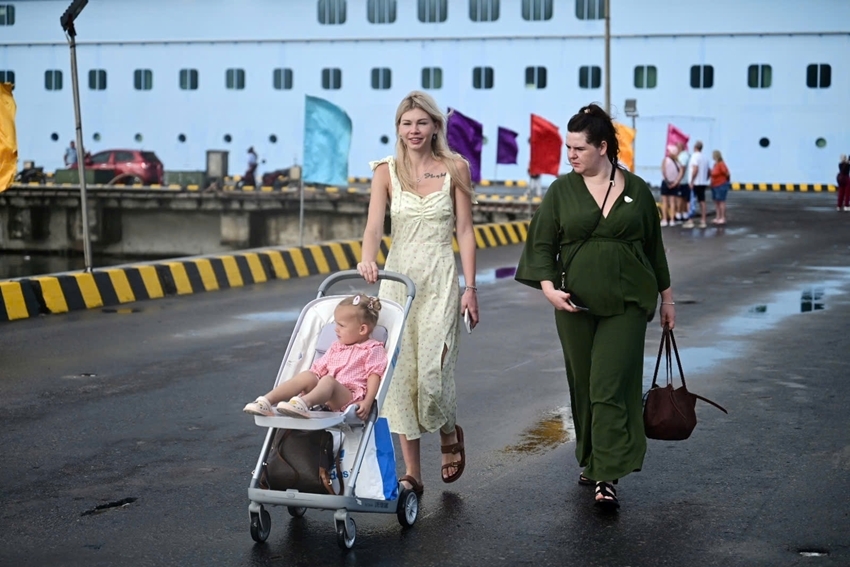 Du khách quốc tế trên du thuyền Ovation of the Seas cập cảng Chân Mây. Ảnh: Vạn An