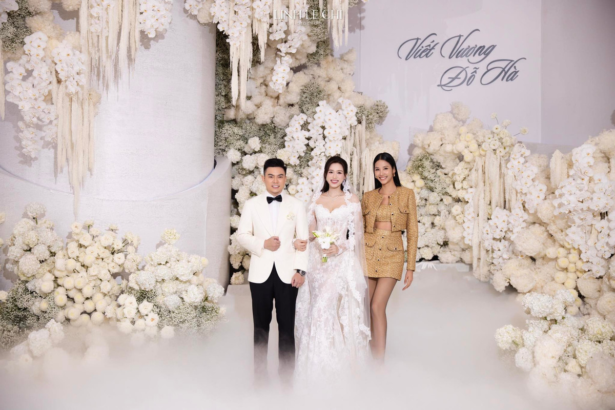 Tối 9/11, đám cưới của Hoa hậu Đỗ Thị Hà và chồng doanh nhân đã chính thức diễn ra. Không chỉ gây ấn tượng bởi không gian tiệc cưới lộng lẫy, tinh tế và ngập tràn sắc hoa trắng, khoảnh khắc các khách mời hòa mình trong không khí hạnh phúc của cặp đôi cũng khiến mạng xã hội “dậy sóng”. Ảnh: FB Linh Le Chi