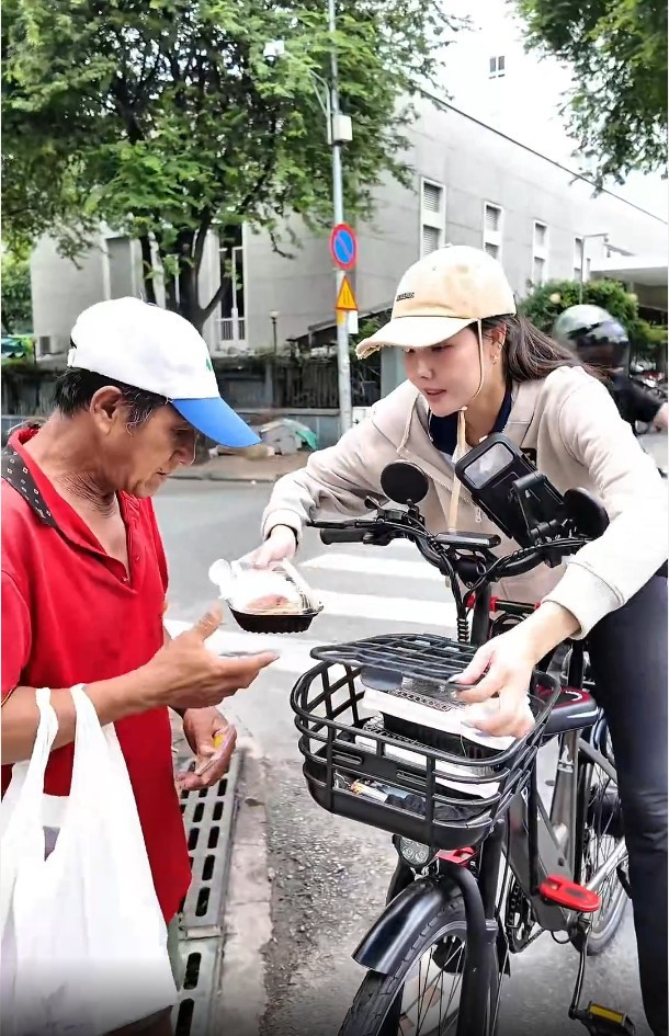 Hình ảnh Kỳ Hân trong trang phục đời thường, vừa đạp xe vừa ân cần trao tận tay từng hộp cơm cho người lao động khiến nhiều người xúc động. Hành động nhỏ nhưng ý nghĩa lớn, không chỉ mang đến niềm vui cho những mảnh đời còn khó khăn, mà còn lan tỏa tinh thần tích cực cho đi để nhận lại niềm hạnh phúc giản đơn.