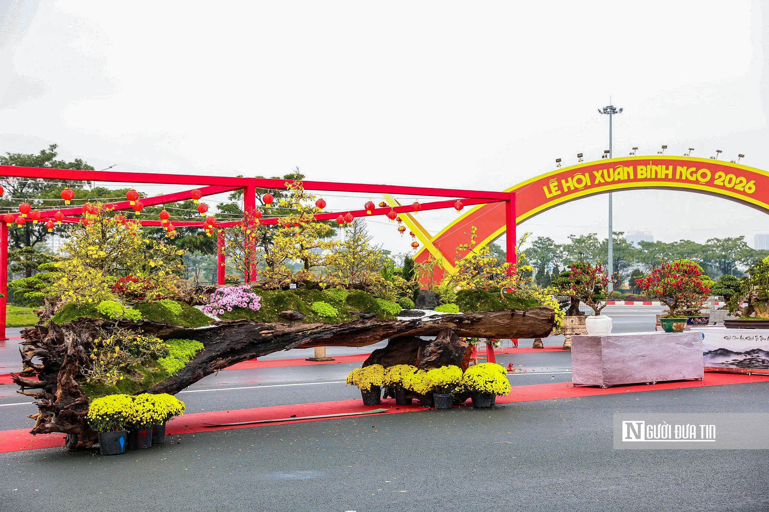 Ngoài tác phẩm Vạn lộc nghinh xuân, tại chợ hoa Tết khu vực Mỹ Đình cũng có nhiều tác phẩm độc đáo khác thu hút người dân dịp Tết Bính Ngọ 2026.