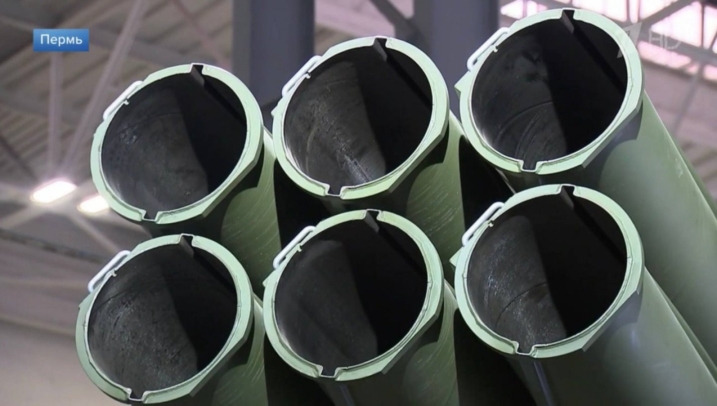 Cận cảnh 6 ống phóng của hệ thống pháo phản lực Sarma 300mm được trưng bày tại Perm. (Nguồn: Army Recognition)