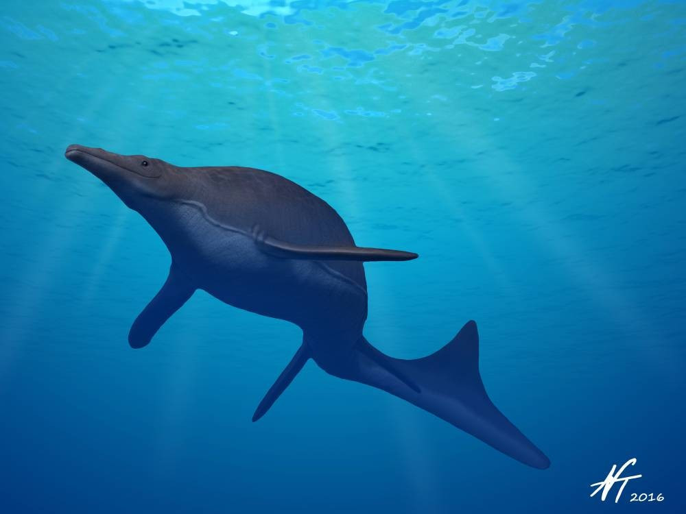 Là loài mosasaur tiến hóa nhất. Cấu trúc cơ thể khí động học và vây đuôi hai thùy giúp bơi nhanh hơn nhiều loài họ hàng. Ảnh: Pinterest.