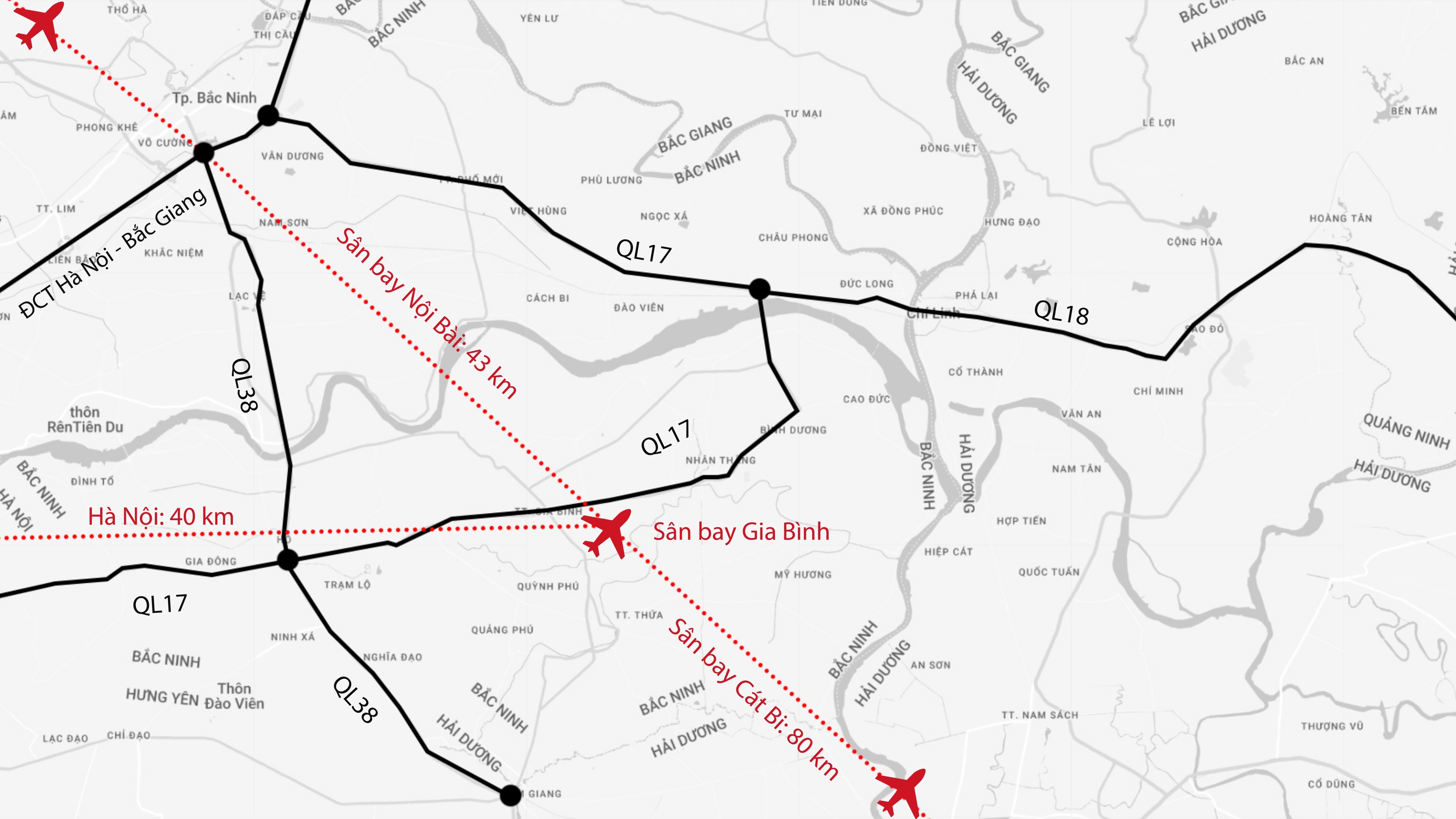 Cảng hàng không quốc tế Gia Bình được quy hoạch trải rộng qua các xã Gia Bình, Lương Tài, Nhân Thắng và Lâm Thao (tỉnh Bắc Ninh).