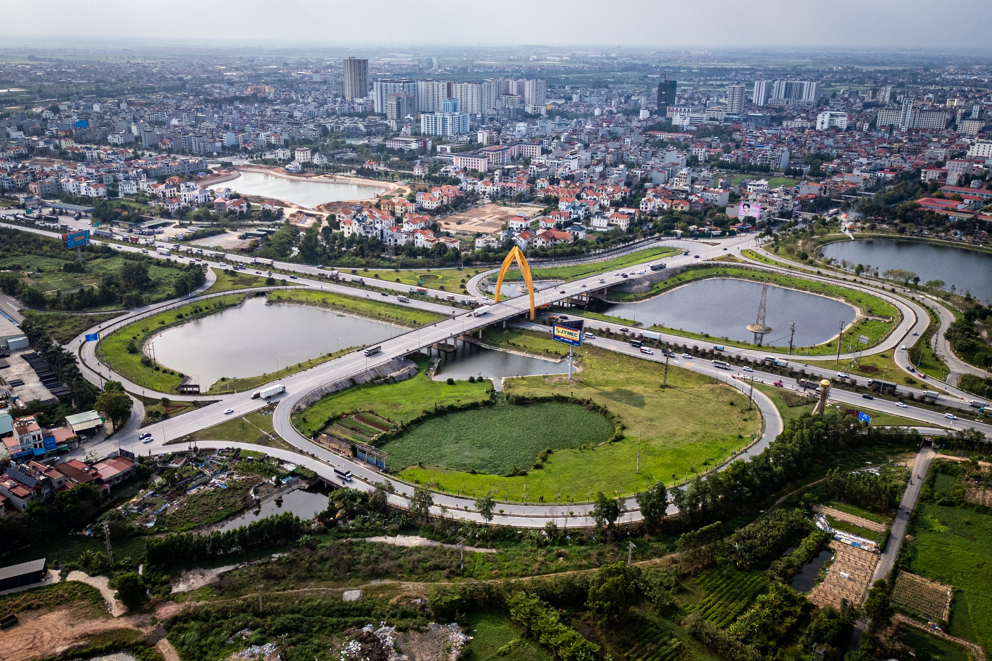 Hình ảnh tại đường QL38, đây là tuyến đường hiện hữu kết nối đường cao tốc Hà Nội - Bắc Giang và cao tốc Hà Nội - Hải Phòng với sân bay Gia Bình. Theo quy hoạch, đoạn xây dựng mới dài 7 km, mặt cắt ngang 120 m, có điểm đầu kết nối với tuyến đường trên địa phận tỉnh Bắc Ninh, điểm cuối tại nút giao giữa cao tốc Hà Nội - Lạng Sơn và cao tốc Hà Nội - Thái Nguyên/Vành đai 3.