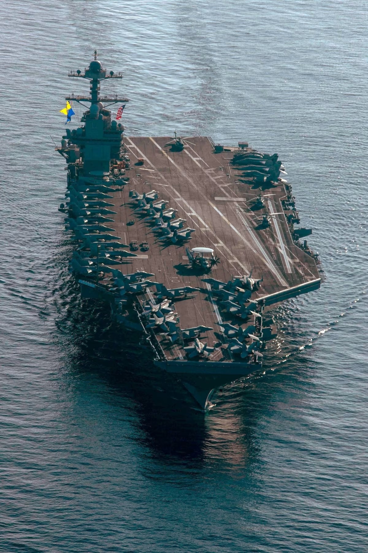 Tàu Phúc Kiến có thể mang khoảng 40 máy bay cánh cố định cùng nhiều trực thăng, trong khi đó, tàu USS Gerald R. Ford của Mỹ có khả năng triển khai hơn 75 máy bay. Ảnh: US Government, Tân Hoa xã.