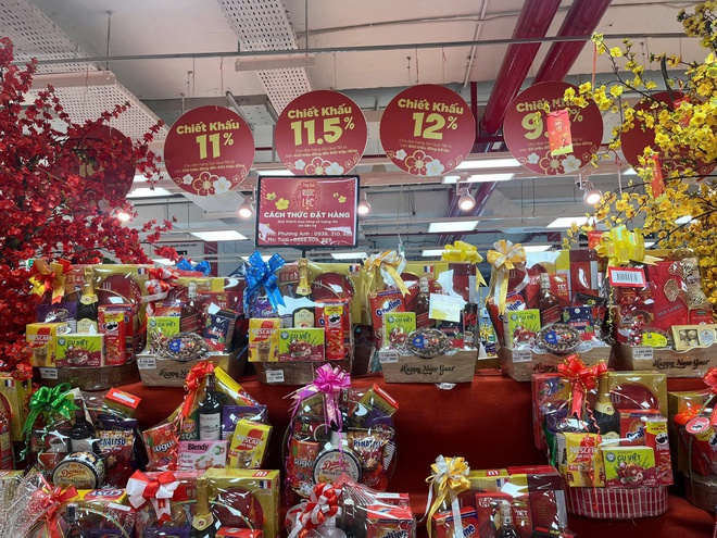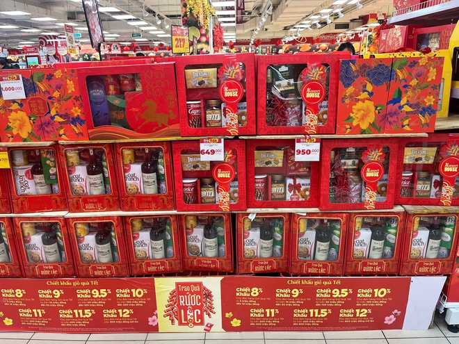 Nhiều siêu thị triển khai chương trình “Trao quà rước lộc”, giảm giá từ 8% đến 12% cho giỏ quà Tết theo từng mức hóa đơn, cùng hàng loạt mặt hàng “giá tốt” thu hút người mua.