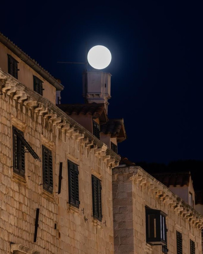 Trăng tròn trên khu phố cổ Dubrovnik, Croatia, ngày 6/10/2025. (Ảnh: PIXSELL/Xinhua)