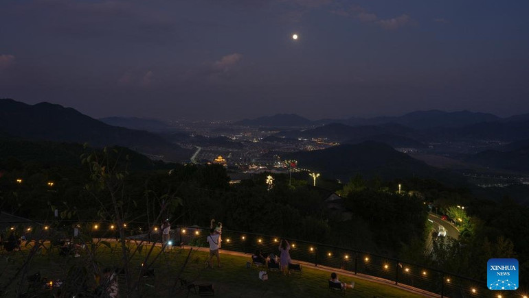 Khoảnh khắc trăng tròn tại Thương Nam, thành phố Ôn Châu, tỉnh Chiết Giang, miền đông Trung Quốc, ngày 6/10/2025. (Ảnh: Xinhua)