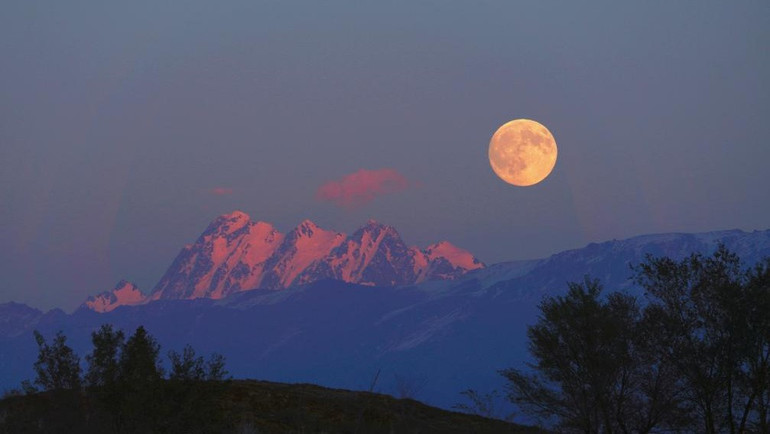 Trăng tròn được chụp tại Urumqi, khu tự trị Duy Ngô Nhĩ Tân Cương, tây bắc Trung Quốc, ngày 6/10/2025. (Ảnh: Xinhua)