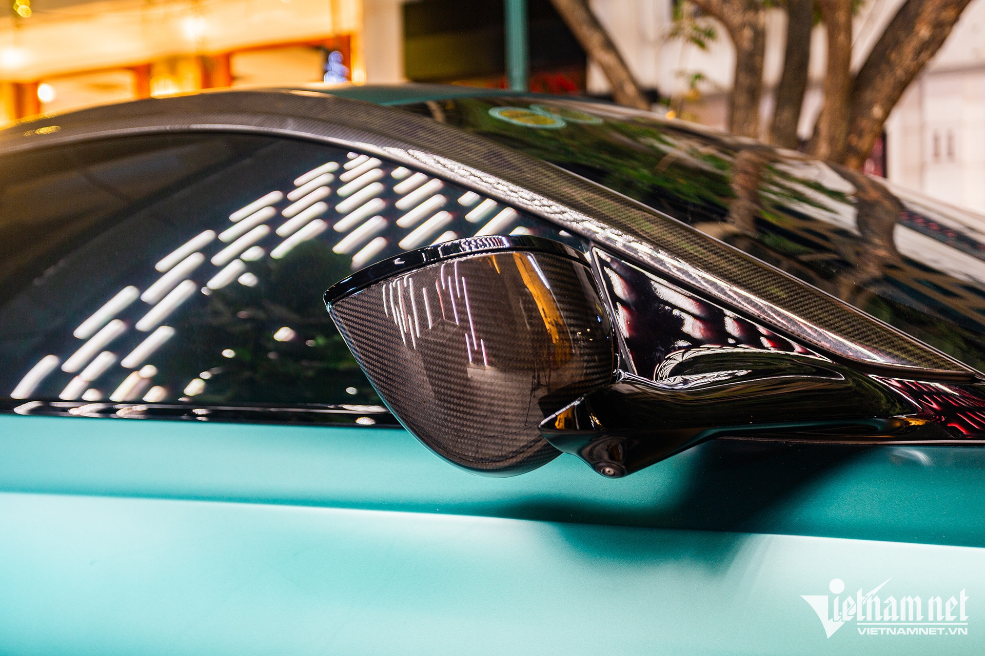 Riêng hai chi tiết là ốp gương chiếu hậu và ốp hai bên mui xe làm từ sợi carbon thuộc gói trang trí thân trên. Giá trị hai món đồ này đều ở mức trên 100 triệu đồng.