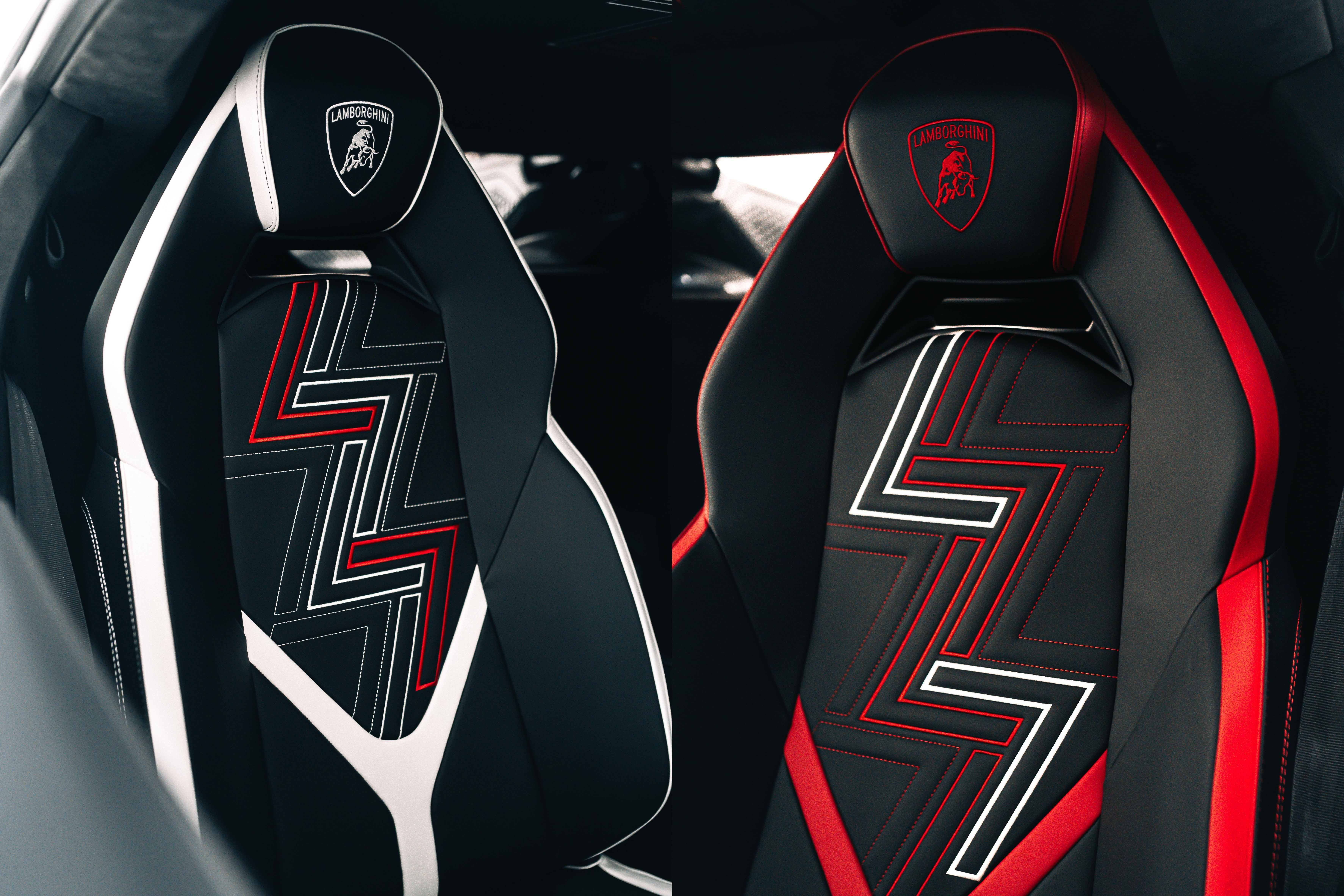 Lấy cảm hứng từ văn hóa Nhật Bản, siêu xe sở hữu hiệu ứng đổi màu dọc từ trắng Bianco Asopo sang đỏ Rosso Khonsu, vốn lần đầu tiên xuất hiện trên một chiếc Lamborghini.