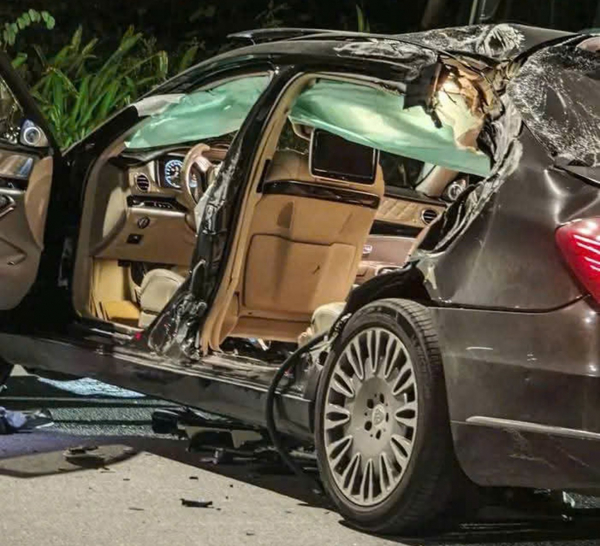 Chiếc xe sang nhãn hiệu Mercedes-Maybach gây tai nạn bị hư hỏng nặng.