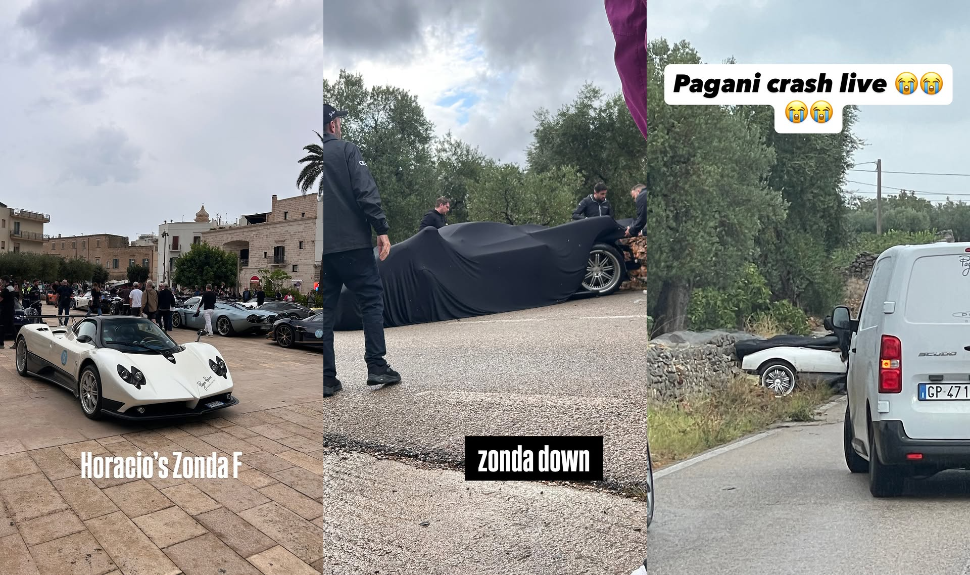Hình ảnh tại hiện trường cho thấy chiếc Zonda F va chạm với một chiếc Renault Kangoo. Phần đuôi của chiếc Pagani chịu tác động mạnh từ tường đá và hư hại nặng. Không rõ ai cầm lái siêu xe này, tuy nhiên không có thiệt hại về người.