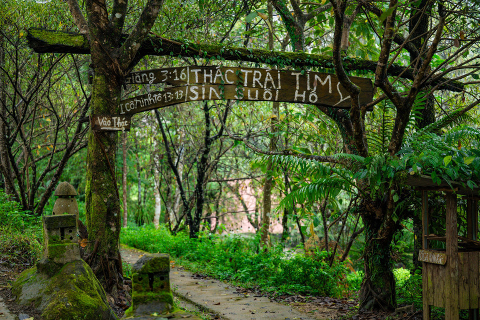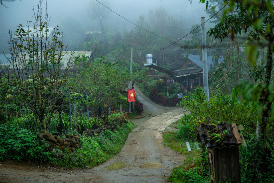 Bản làng này cũng được mệnh danh là "thiên đường trong mây" cùng cảnh sắc hùng vĩ của thác Tình Yêu, thác Trái Tim và những thửa ruộng bậc thang vàng ươm mỗi mùa lúa chín. (Ảnh: Minh Sơn/Vietnam+)