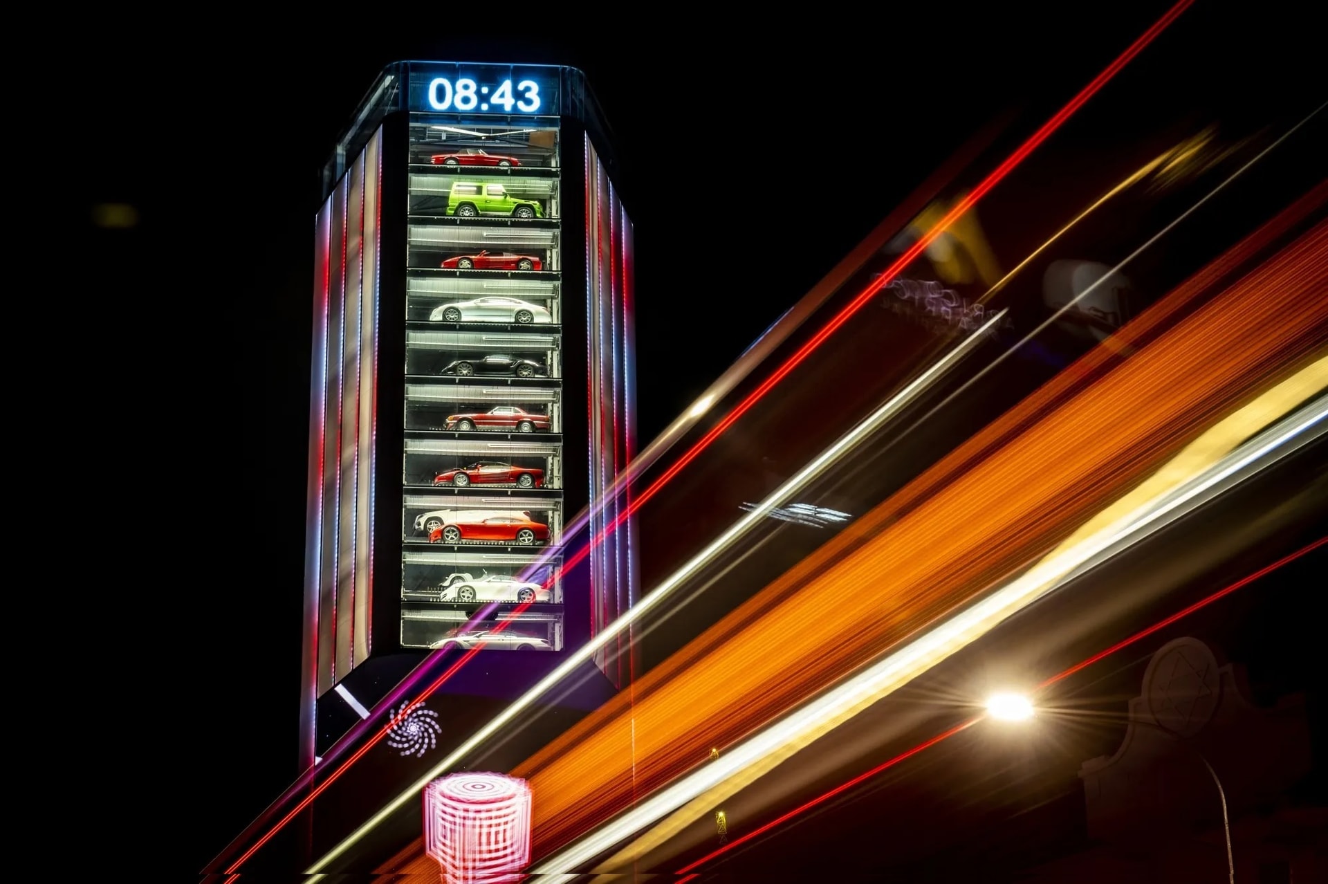 “Ten Square”, tòa nhà kiêm máy bán xe hơi hạng sang tự động ở Singapore. Ảnh: Bloomberg