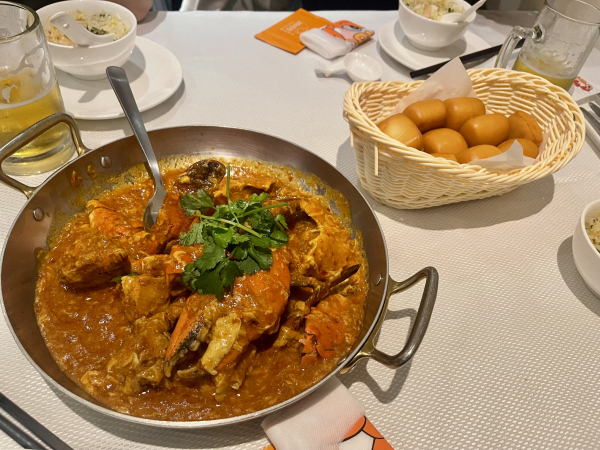 2.Tôi check-in khách sạn khi đã hơn 6 giờ tối. Có hẹn với bạn, đúng 7 giờ chúng tôi đi bộ ra khu trung tâm để ăn tối. Bạn dẫn tôi men theo bờ sông Singapore, đi qua Clarke Quay, khu vực ven sông nổi tiếng với các quán nhậu đông khách. Dọc bờ sông là lối đi riêng, khá đông người đạp xe, đi dạo và chạy bộ. Chúng tôi chọn một nhà hàng hải sản khá nổi tiếng, phải chờ gần 15 phút mới có chỗ. Ngay lập tức, ấn tượng thứ hai về Singapore hiện ra: đắt đỏ. Món đặc sản mà hầu như du khách nào cũng muốn thử là Chilli Crab, cua sốt ớt nổi tiếng. Một con cua to cỡ bàn tay được bày trên đĩa có giá gần 100 đô la. Bia cũng không hề rẻ, gấp khoảng năm lần so với Việt Nam.