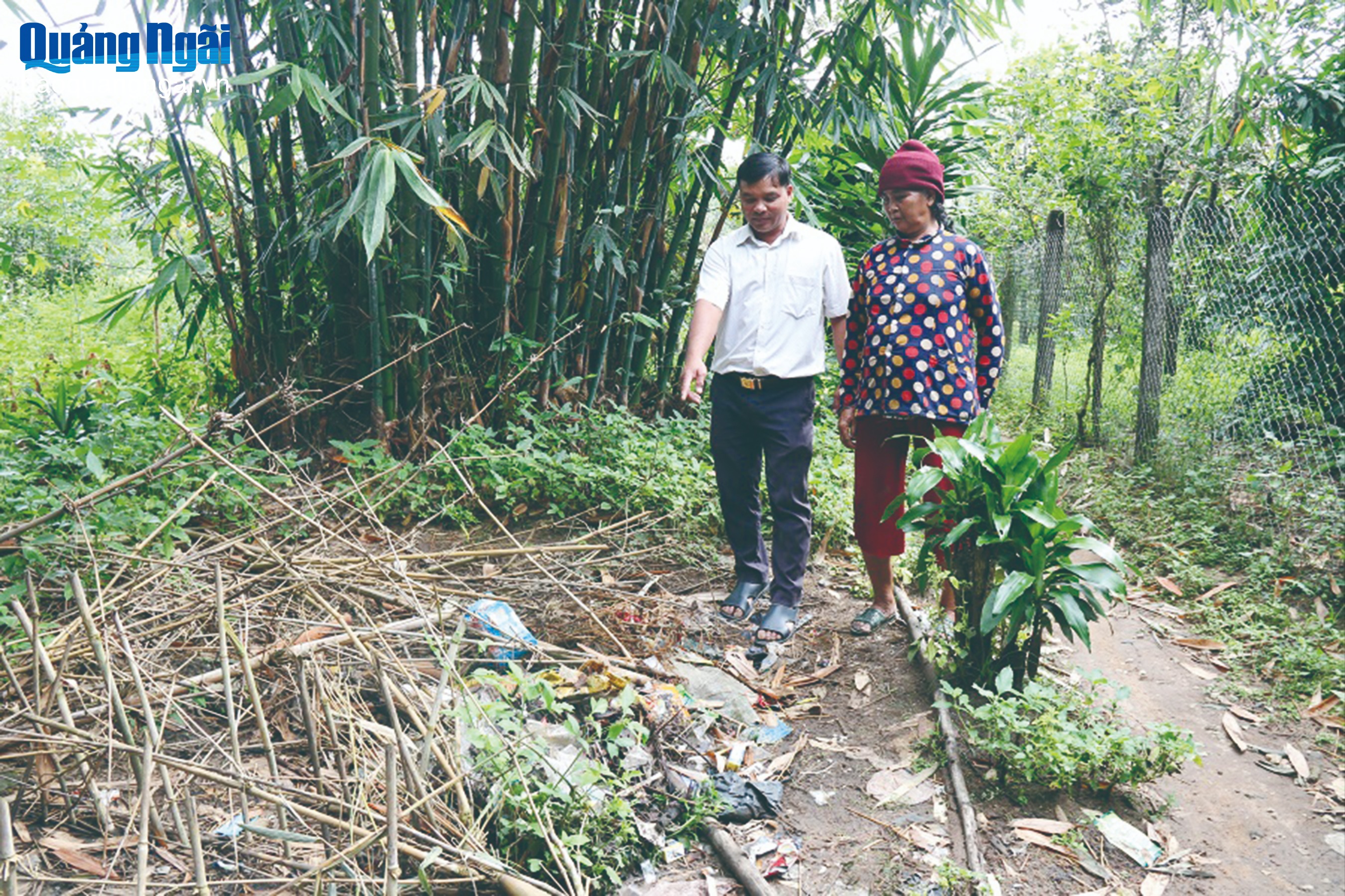 Đảng viên chi bộ thôn Nông Kon hướng dẫn hộ dân xử lý rác thải tại nhà.