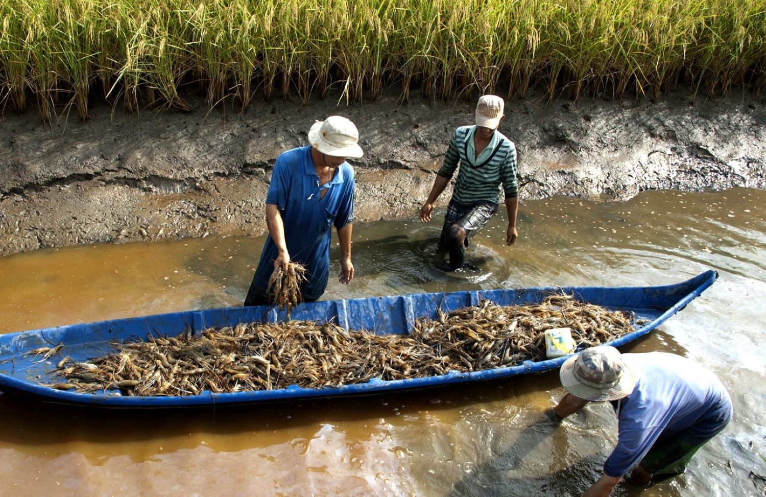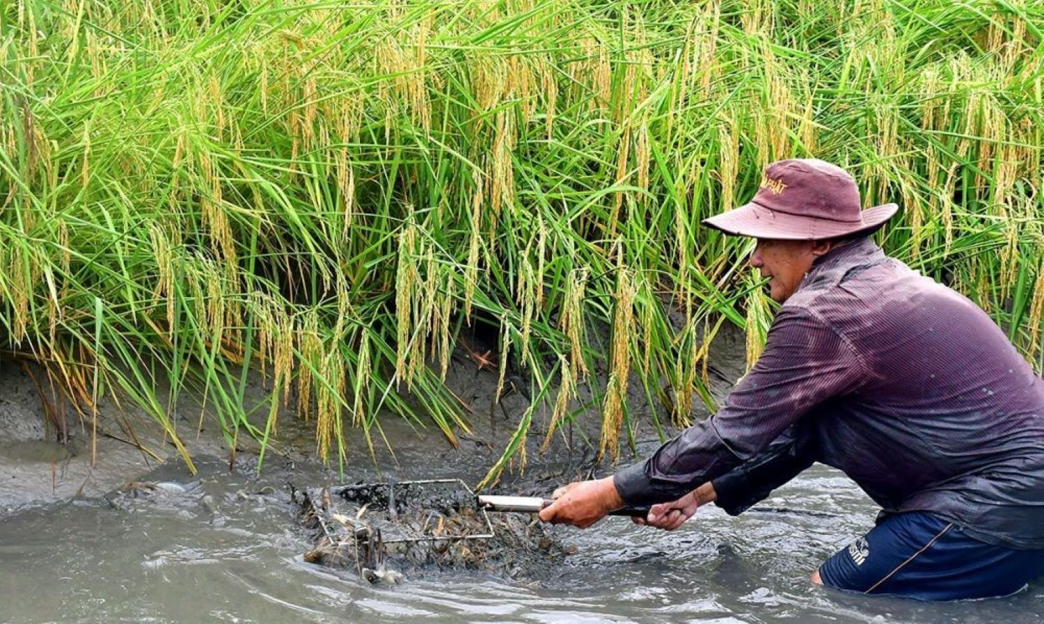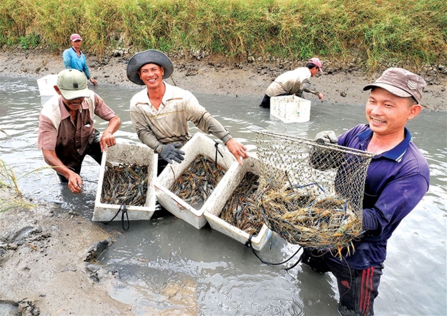 Người dân Cà Mau thu hoạch tôm, thu hoạch lúa.