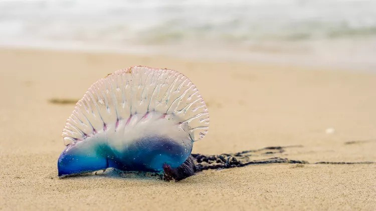 Giới chức trách cho biết những sinh vật Portuguese Man O' War không phải là nguyên nhân gây ra thảm họa bởi chúng thường bị cuốn trôi ra biển khi thủy triều lên. Ảnh: Stephen Frink/Getty Images.