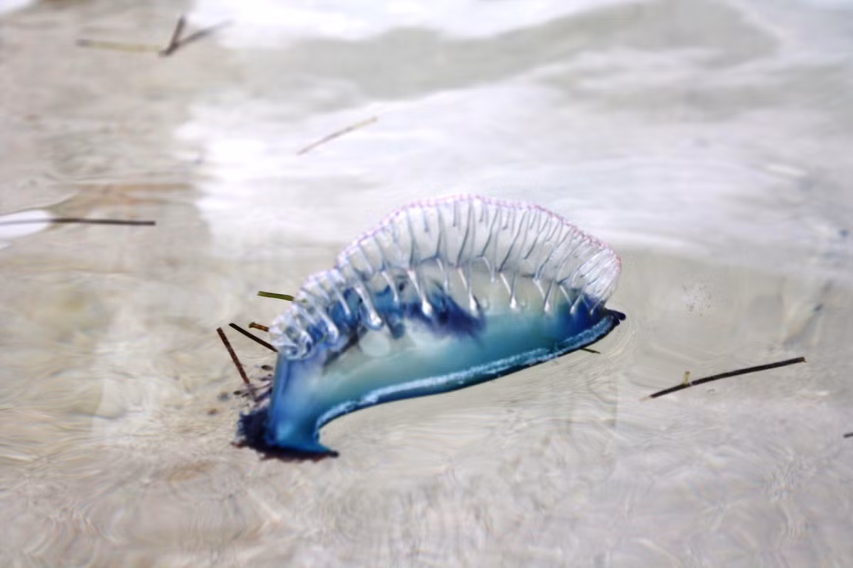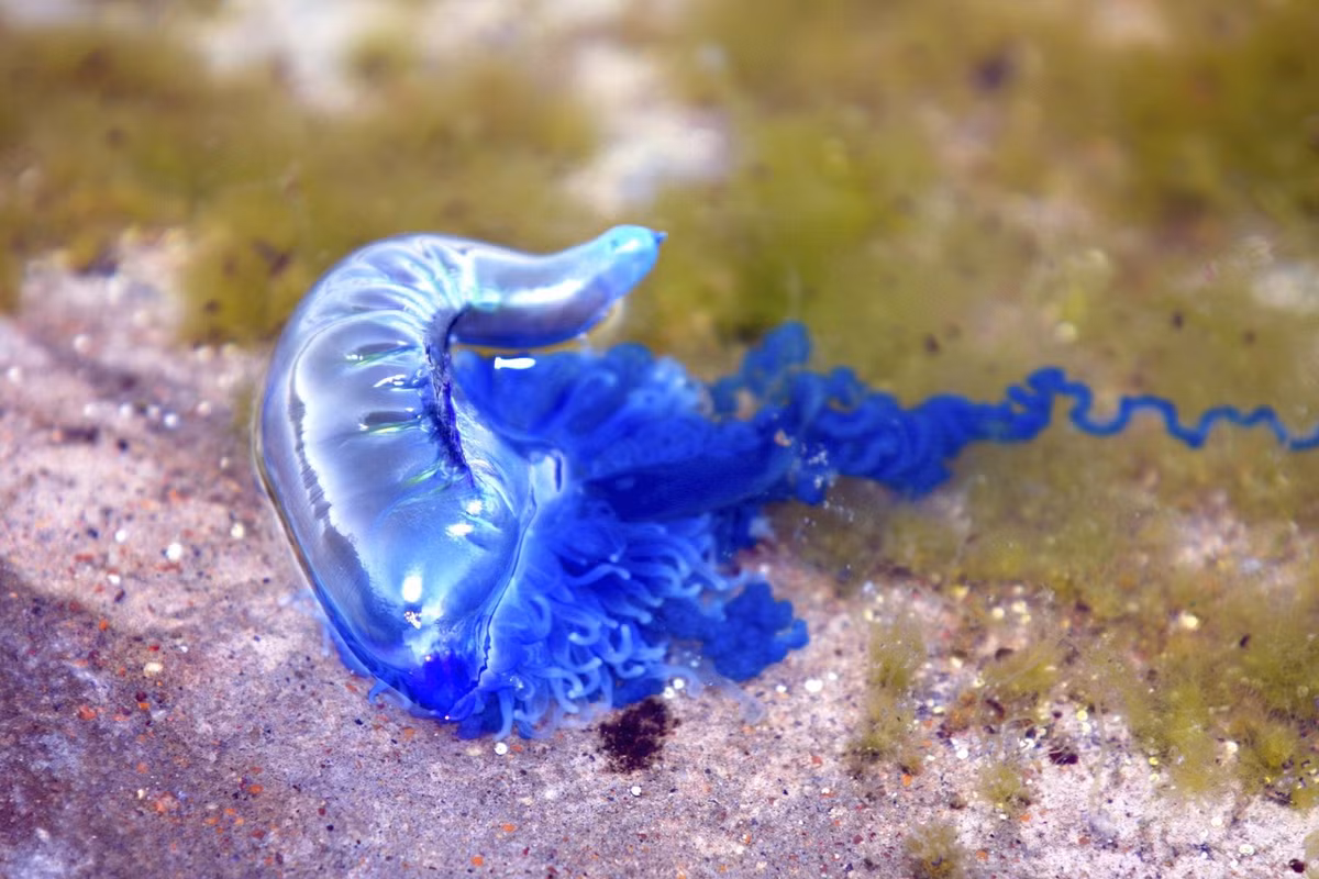 Dấu hiệu dễ nhận biết nhất của Physalia physalis là phần túi nổi màu xanh tím, trong suốt, giống như một chiếc buồm nhỏ căng gió. Chính cấu trúc này giúp nó trôi theo dòng hải lưu và gió, đôi khi dạt vào bờ biển sau những cơn bão. Bên dưới “chiếc buồm” ấy là những xúc tu dài có thể kéo dài hàng chục mét, mảnh mai nhưng cực kỳ nguy hiểm.