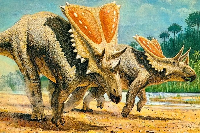 Sống cách đây khoảng 75 triệu năm. Chasmosaurus xuất hiện vào cuối kỷ Phấn Trắng tại khu vực nay là Canada. Ảnh: Pinterest.