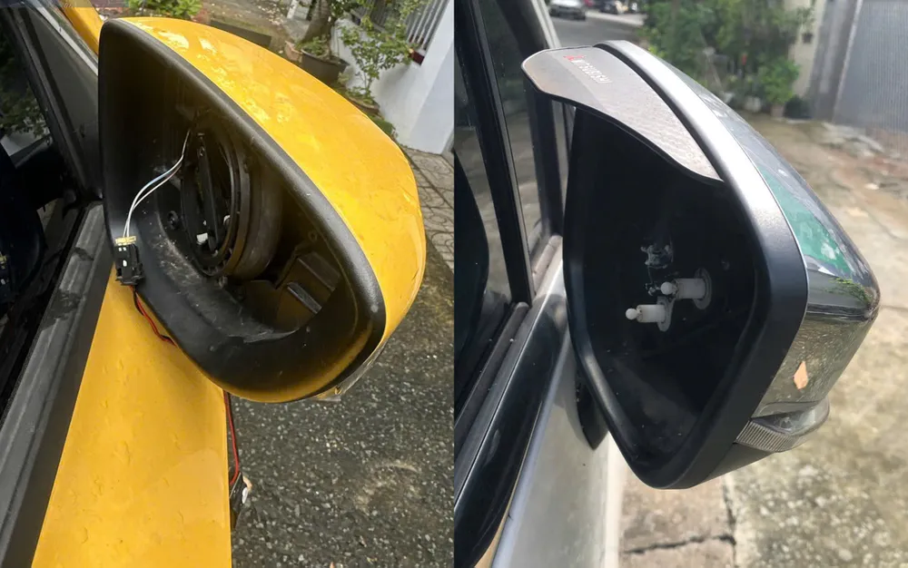 Hàng loạt xe ô tô bị bẻ gương chiếu hậu.