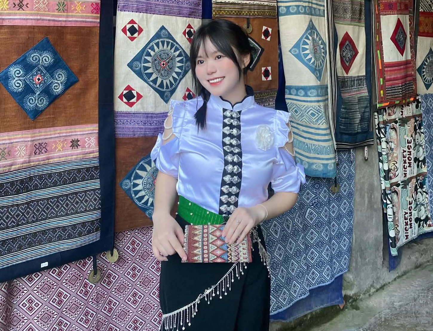 Sinh viên Hoàng Ngọc Ánh trong trang phục truyền thống dân tộc Thái. Ảnh: MK